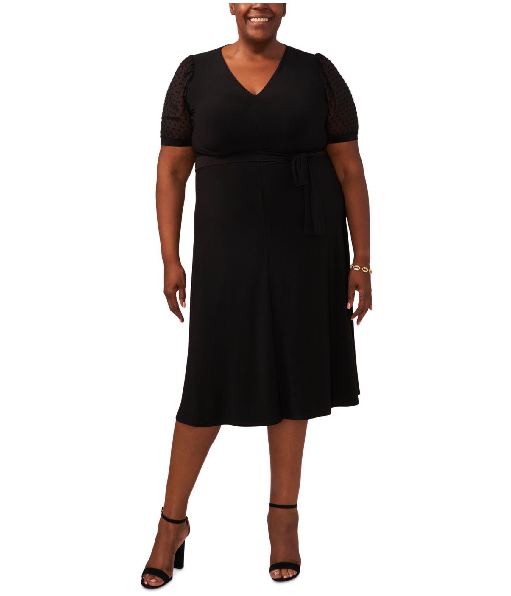 MSK Womens Tie Front Midi Dress, black, Plus Size, 1X