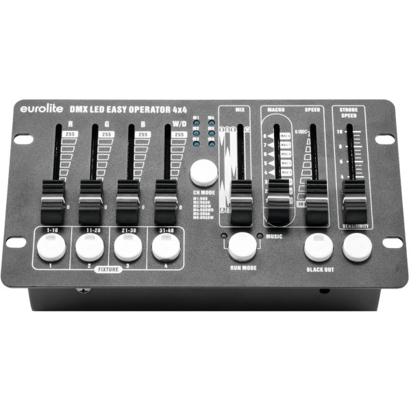 Mit dem EUROLITE DMX LED EASY Operator 4x4 präsentiert sich ein durchdachter, kompakter DMX-Controller, der speziell für die Steuerung von LED-Scheinwerfern mit RGBW-Farbmischung entwickelt wurde. Ideal geeignet für DJs, Alleinunterhalter oder auch ambitionierte Hobby-Lichttechniker, ermöglicht dieser Controller eine schnelle und intuitive Bedienung – ganz gleich, ob im heimischen Partykeller, bei mobilen Events oder auf kleinen Bühnen.