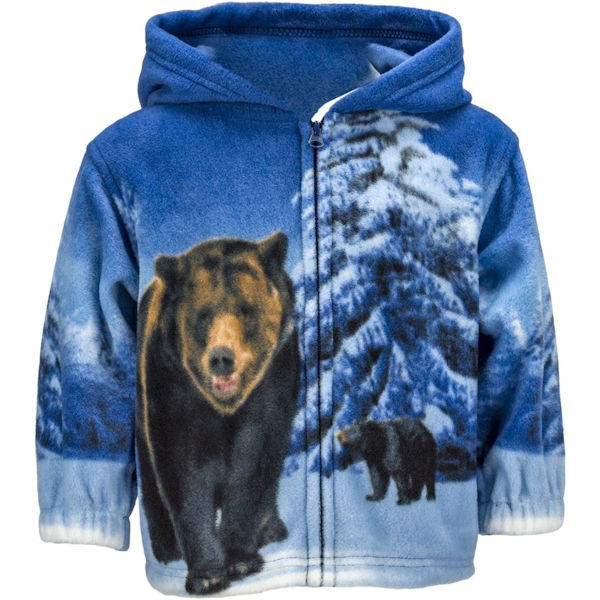 - Surround those young ones with the exhilaration of the wilderness in comfort and style! Let them find their comfort zone in the bear animal print with this fleece wildlife jacket.