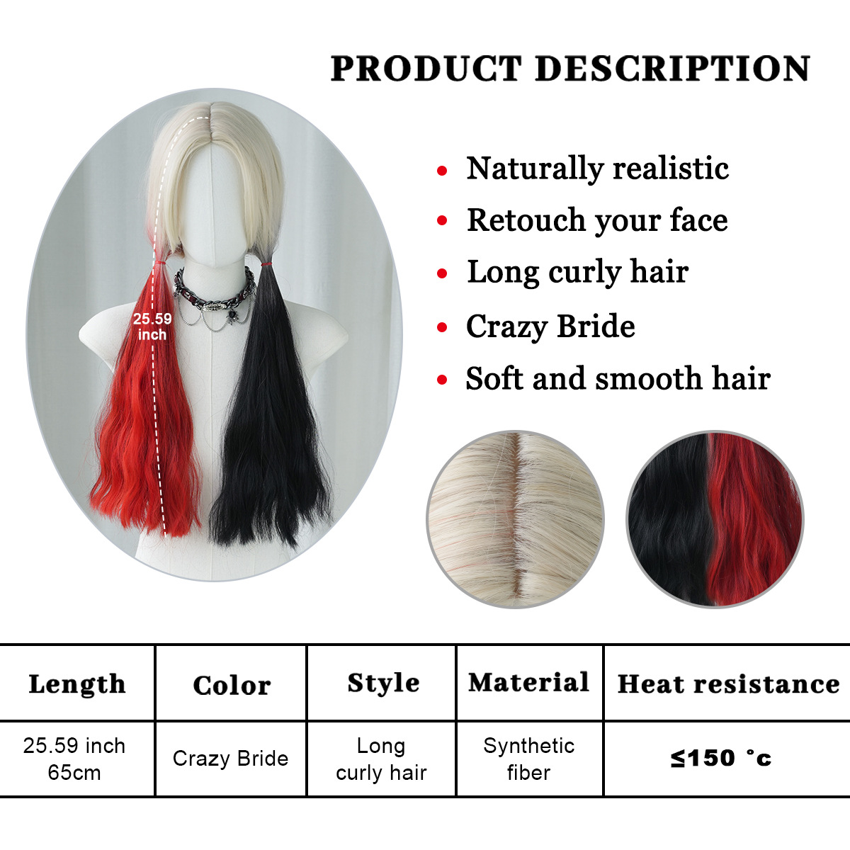 Material: Premium heat-resistant synthetic fiber, soft, silky & tangle-free