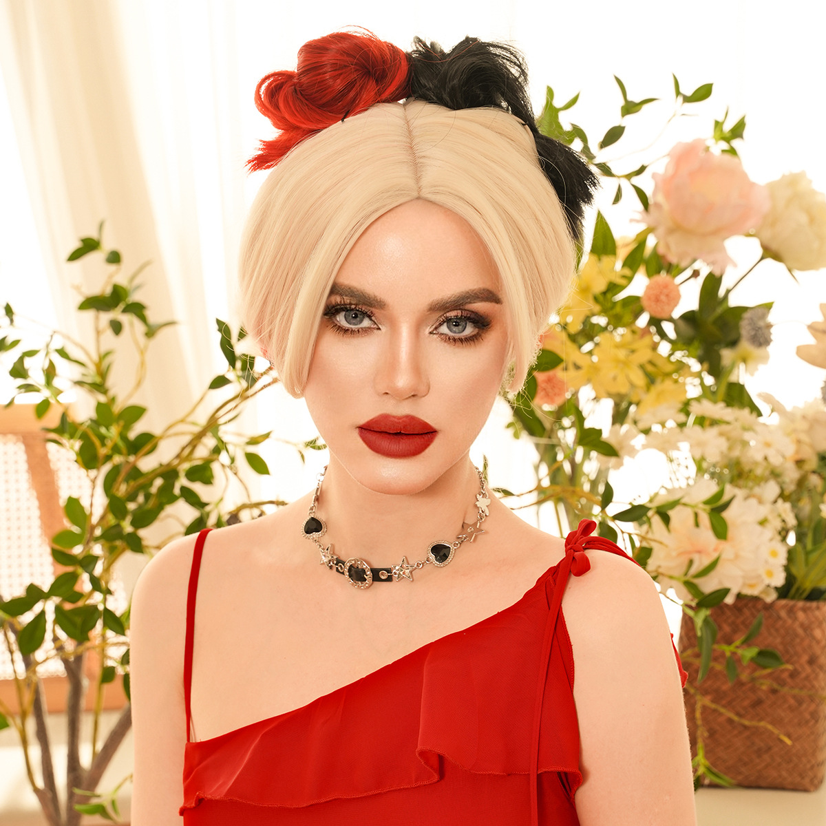 Character Inspired: Perfect Harley Quinn cosplay wig with iconic red & black split design