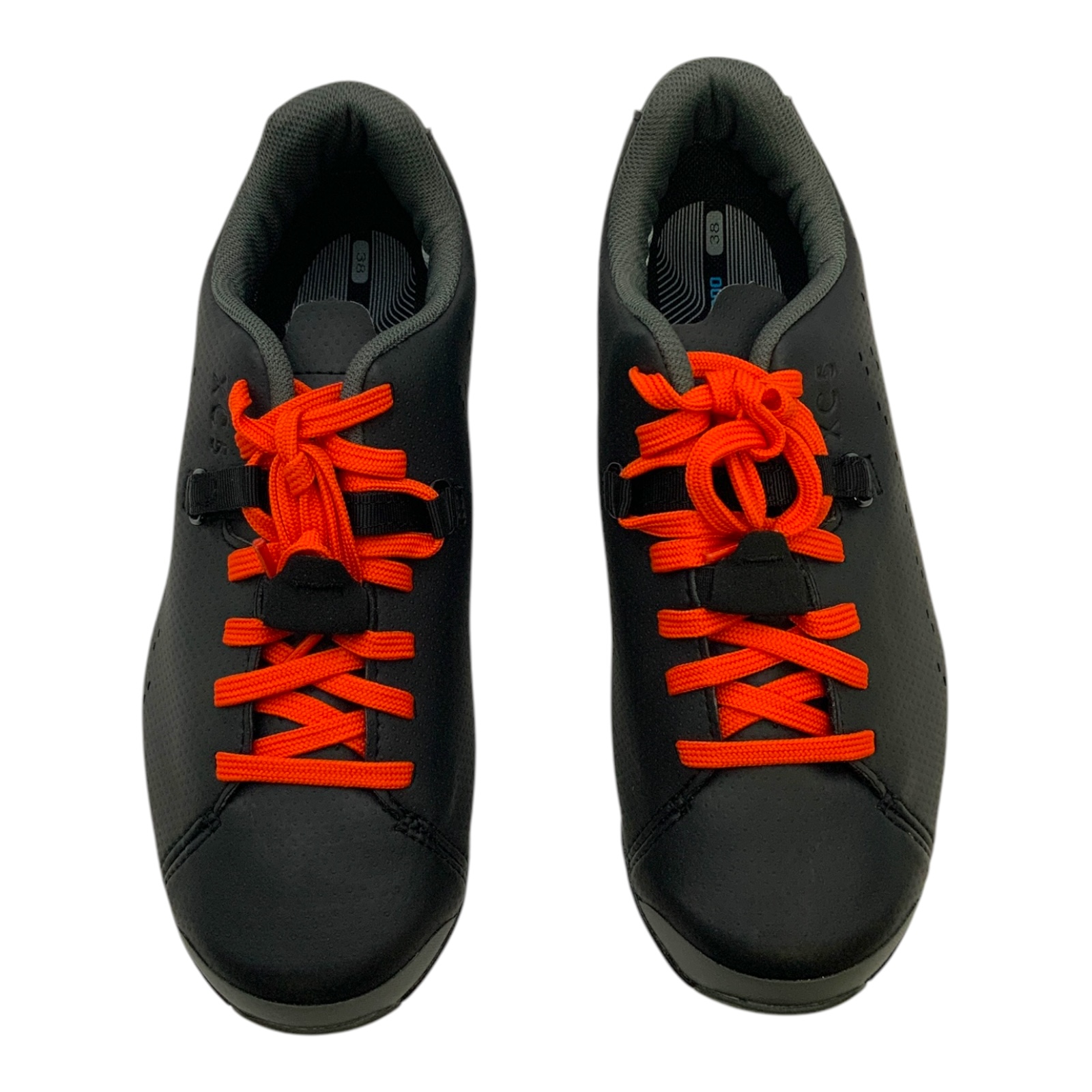 The Shimano XC5 mountain biking shoe is designed for everyday biking with its relaxed design. The invisible embedded stiffening plate brings power to the pedals. This lace-up round toe biking shoe features a synthetic upper, synthetic lining, a rigid carbon fiber reinforced midsole, a composite outsole with a rubber anti-slip pattern with a 2-bolt cleat compatibility. Men's Size US 5.2/EU 38 shoes are new with box.