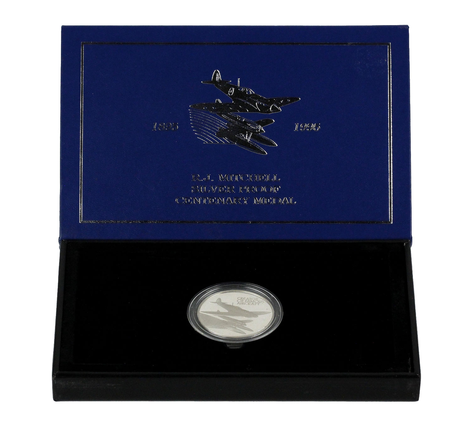 This medal was made by the Royal Mint in order to celebrate the life of R. J. Mitchell, the creator of the Spitfire plane during WWII. The medal displays light marks and hairlines, but is otherwise in excellent condition. These were limited to a mintage of only 5,000. It comes with its original case; however, it is missing its Certificate of Authenticity. A great gift for any WWII fanatic!
