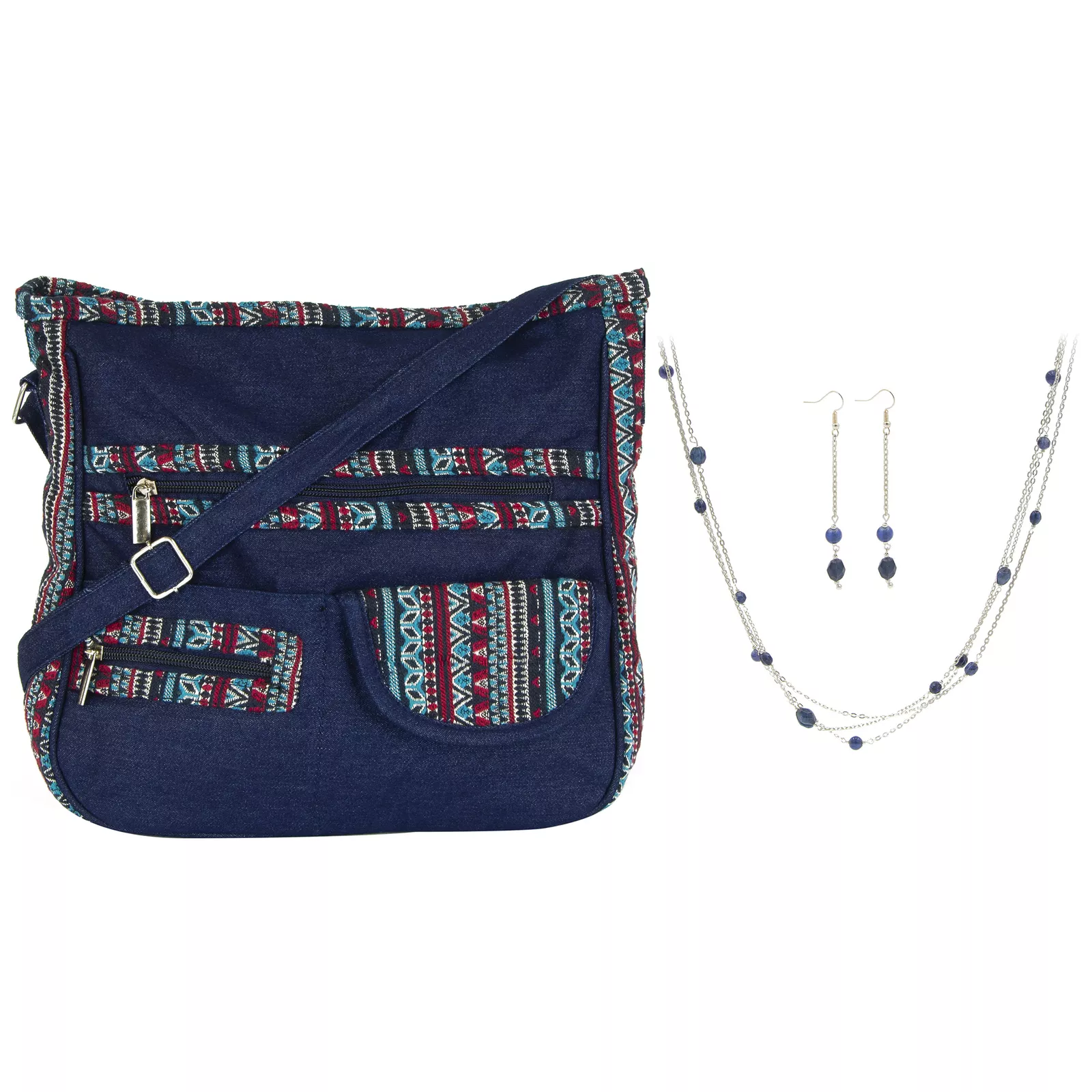 Canyon Sky Southwestern Denim Crossbody Messenger Bag and Jewelry Set