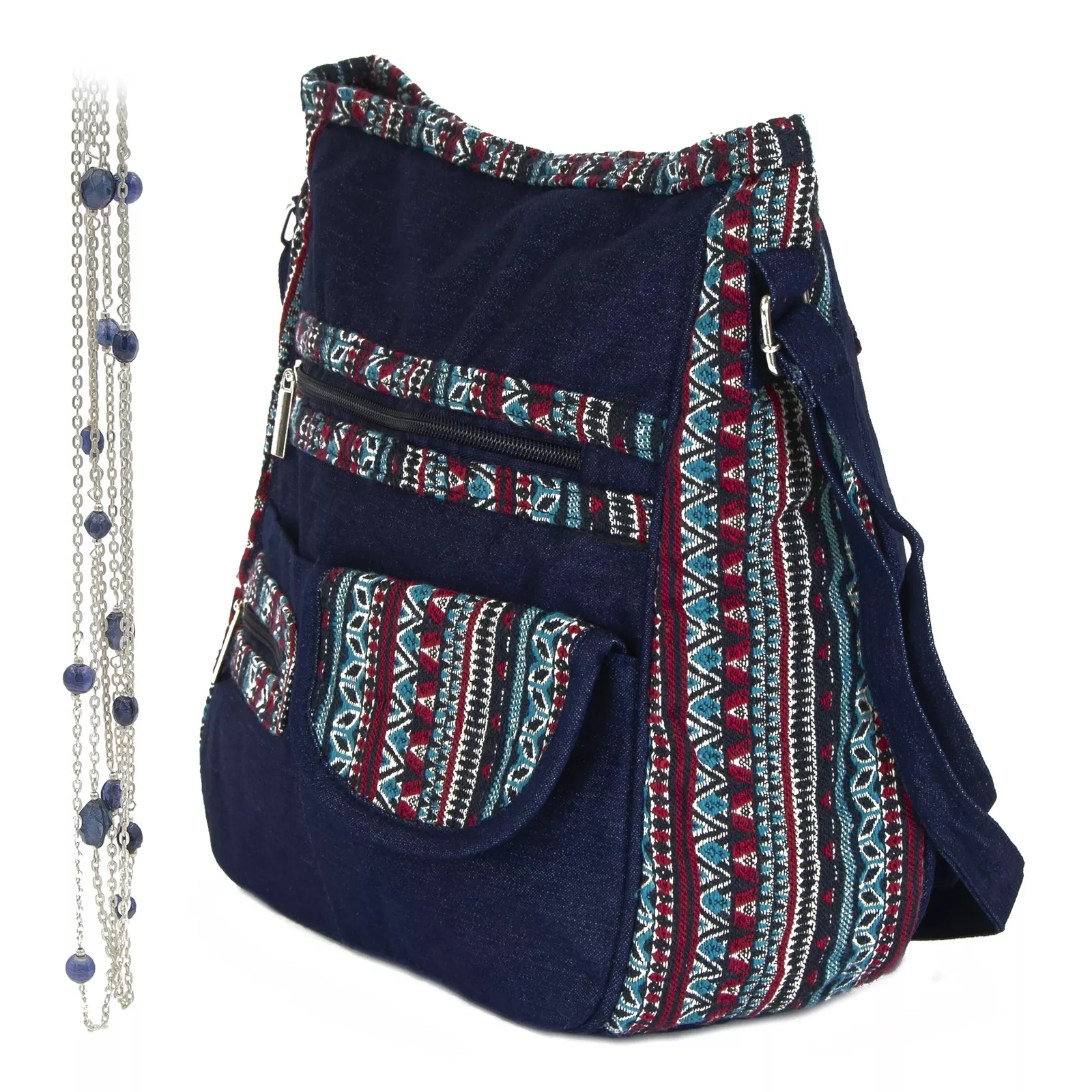 - 2-PIECE MATCHING ACCESSORY SET – Includes a Southwestern-inspired denim crossbody messenger bag and coordinating layered necklace with matching dangle earrings for a complete boho chic look.