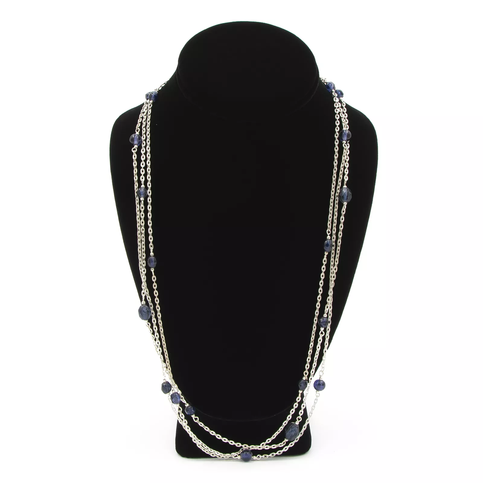 - COORDINATING JEWELRY SET – 24" layered necklace with 3" extender features three strands of blue beads on silver-tone rolo chain with lobster claw clasp, plus matching 3" fishhook dangle earrings for a polished, coordinated outfit.