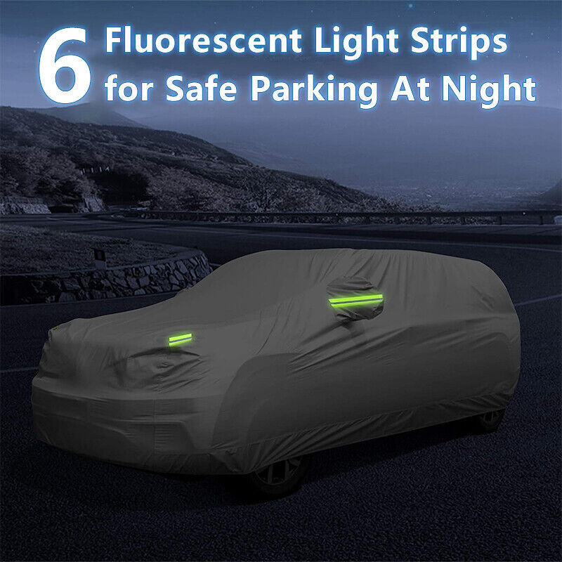 SPECIALTY DESIGN: Our cover for car is equipped with 4 x Windproof drawstring At Front & Rear, 1x windproof belts Across the car underbody from left to right to To Fix Your Auto Cover In Heavy Wind Weather. 6 reflective strips protect your car in safe and visible environment, even at night!