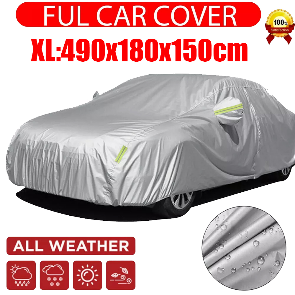CAR COVER WATERPROOF ALL WEATHER: No matter sun or snow weather, our car cover can waterproof, sun-proof, snow-proof, windproof, dust-proof, Scratch resistant multifunction and protect automotive from dirt, UV pollutants for the whole 4 seasons.