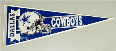 This listing is for a vintage Dallas Cowboys 1990s pennant. Made by Trench Mfg. Buffalo NY. Official licensed product. Approximately 29 1/2" long x 12" at widest. Will be shipped flat.