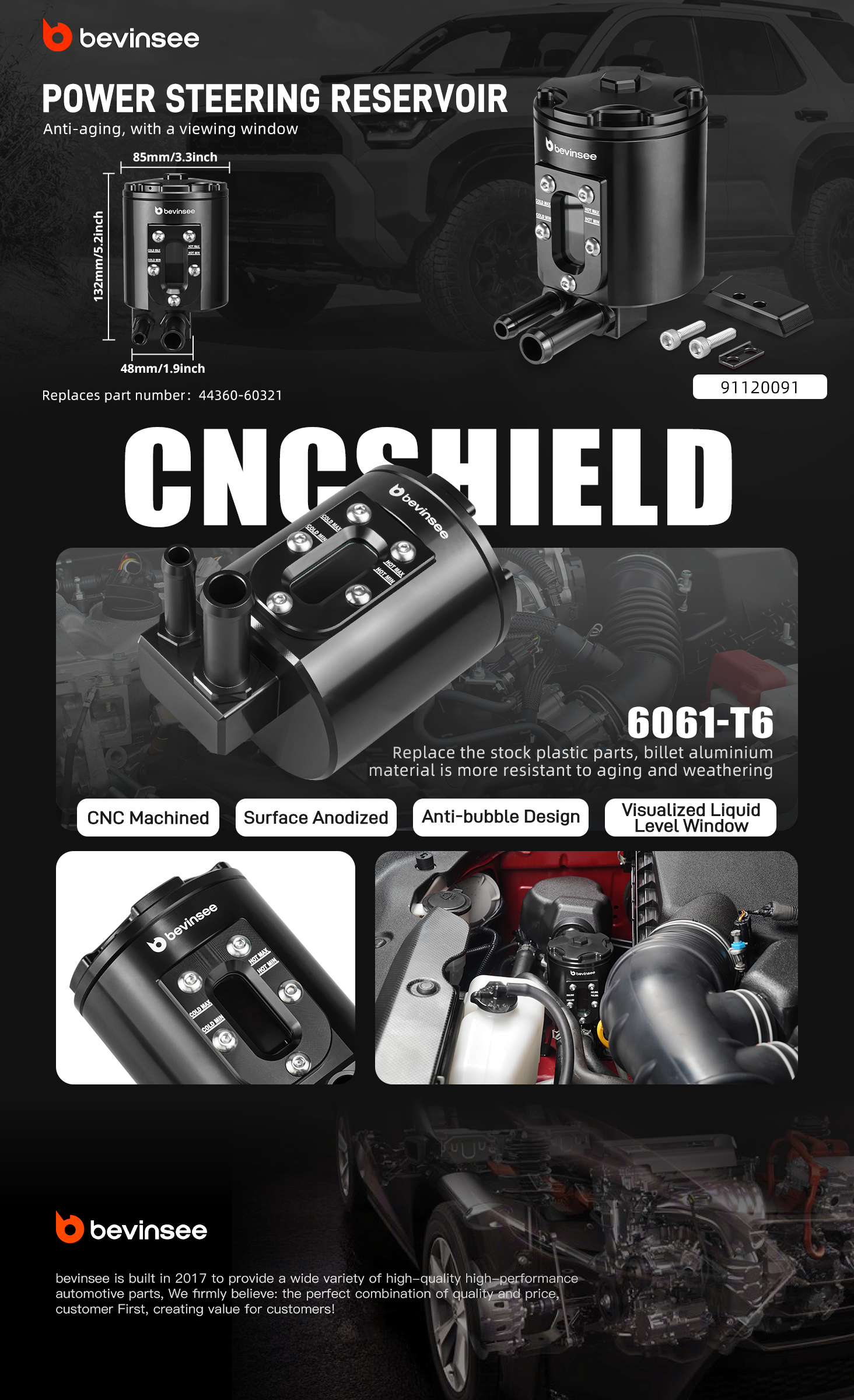 Plastic Deterioration & Fragility: Factory plastic reservoirs exposed to high temperatures in the engine bay often age, discolor, and become difficult to read. Cracks can lead to fluid leaks, causing power steering failure and posing safety risks.