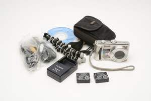 Includes Lowepro case, mini table tripod, wrist strap, 2X batteries, charger, USB, and CD