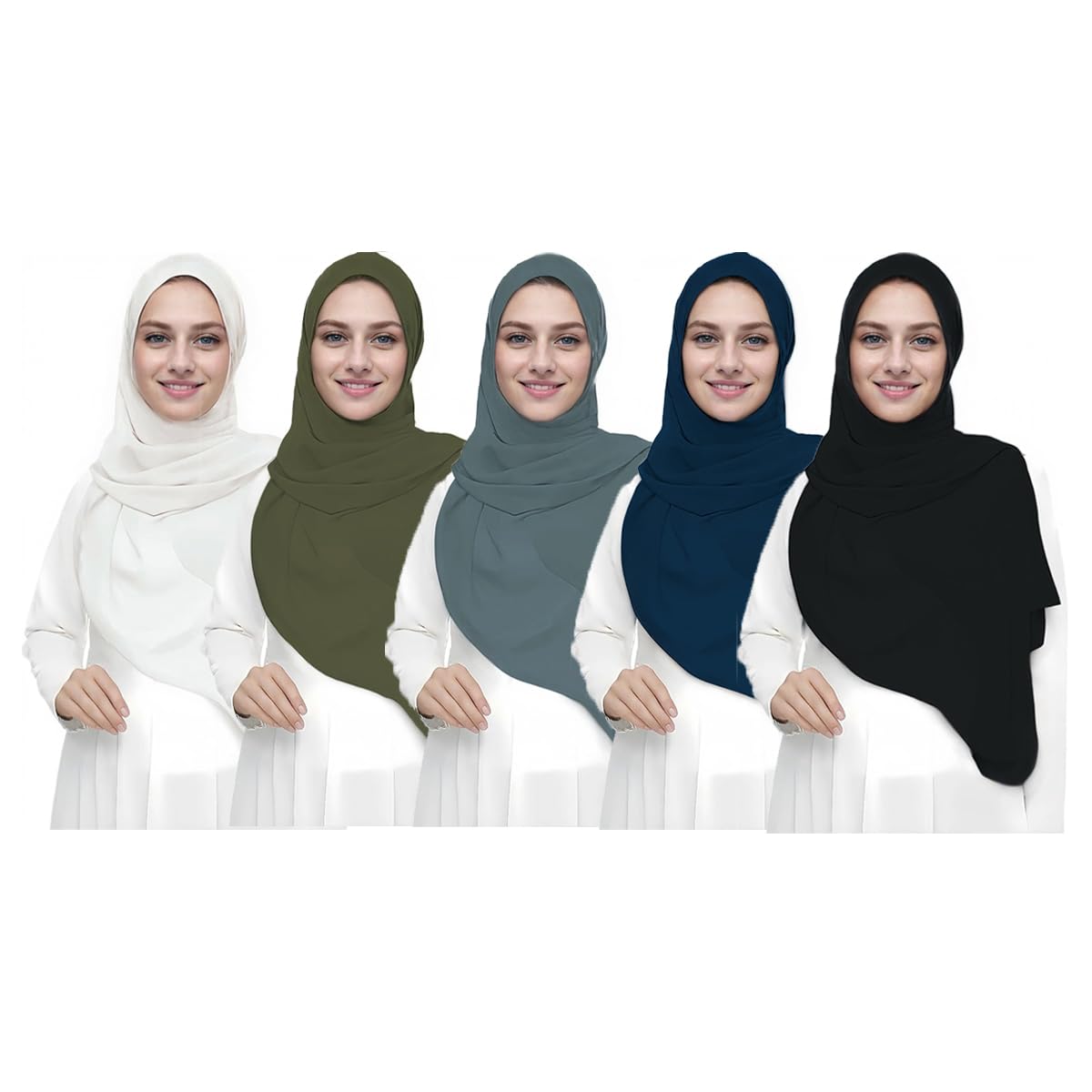 Our product includes 5 different colored chiffon scarves in one box, with multiple color combinations for you to choose from. We use soft, high-quality chiffon material that will make you feel soft, comfortable, and lightweight. This is a professional muslim scarf/hijab scarf that can be used as a women's headscarf, shawl, headscarf, etc., and easily paired with your evening gown. They are widely used to meet your different needs in different occasions: Windshield, warmth, and protection from direct sunlight on the skin. This special gift box set also gives you an additional gift that can be used for future occasions, bringing you surprises.