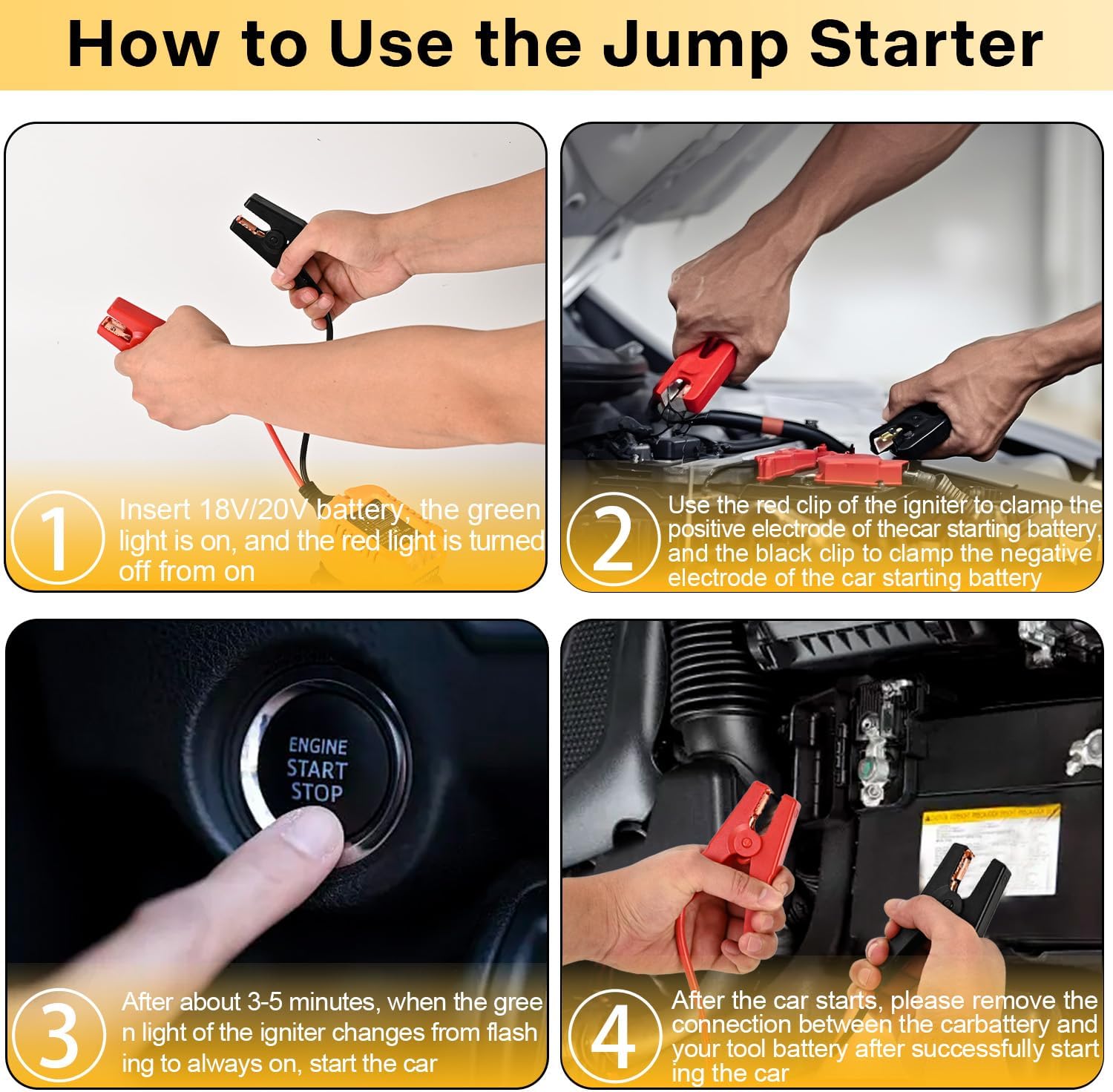 Jump Starter Compatible with Dewalt 18/20V Battery - Heavy Duty 11AWG Jump Starter Cable (1.2FT), Car Battery Booster Using Power Tool Batteries (Battery not Included)