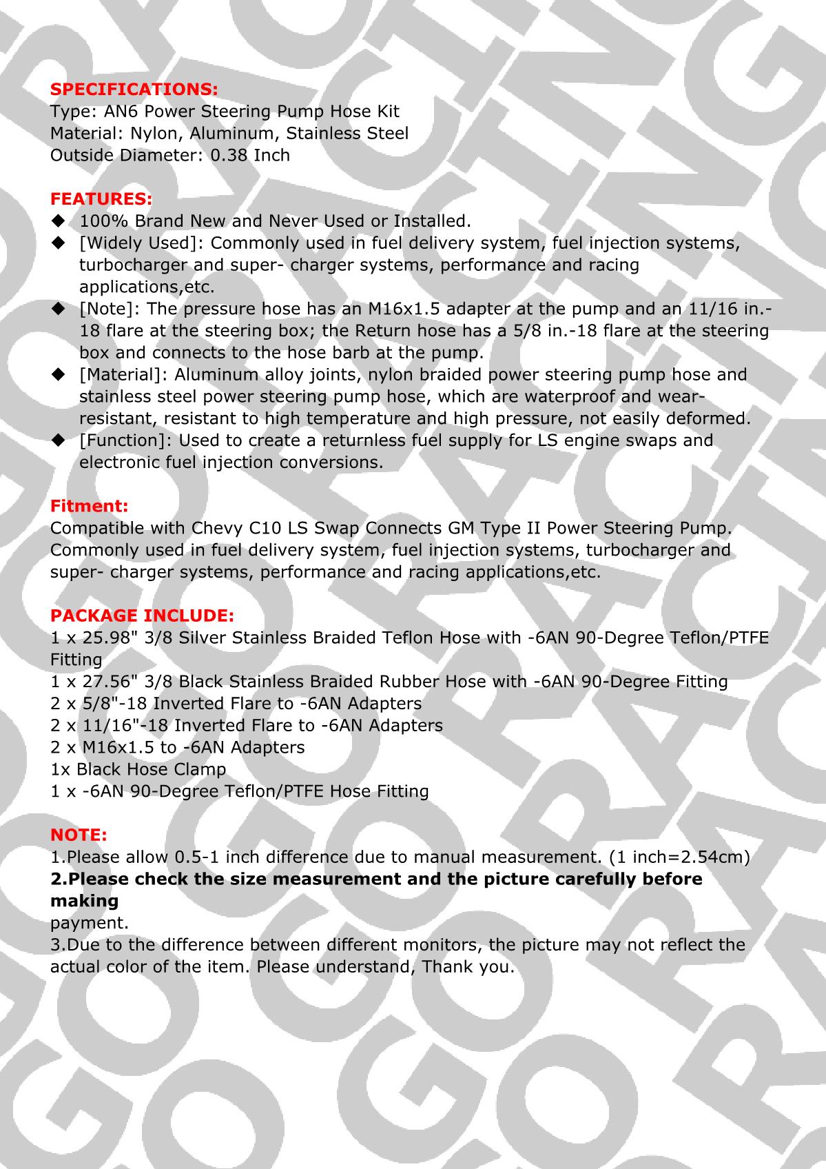 Universal 6AN Power Steering Hose Kit Fit Chervy LS Swap Pressure Return Line