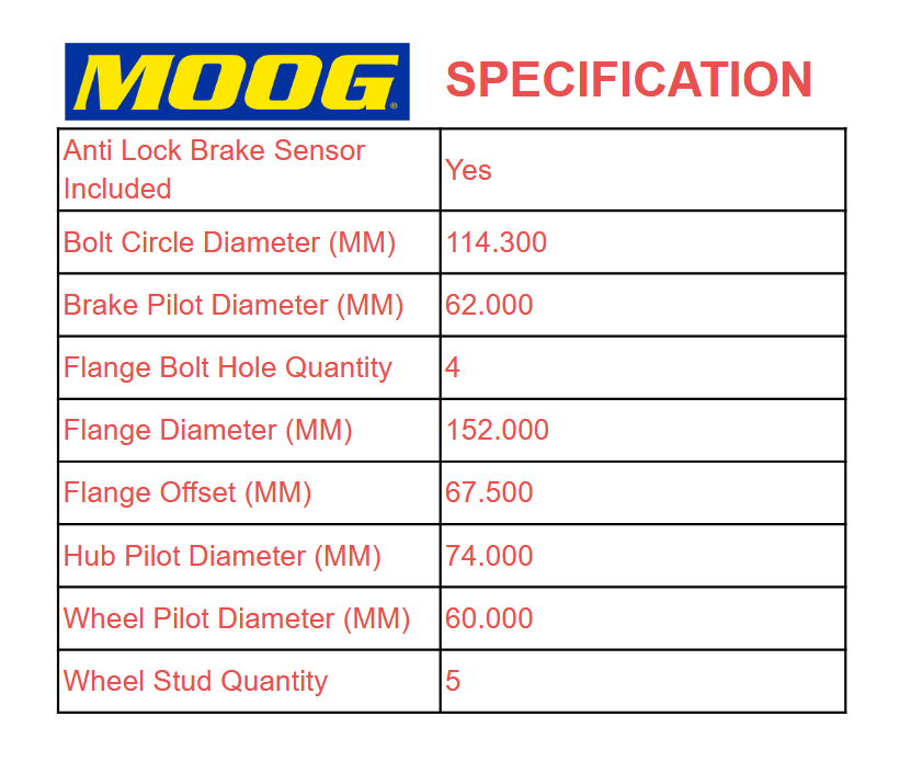 MOOG Rear Right Wheel Hub and Bearing Assembly - 512455