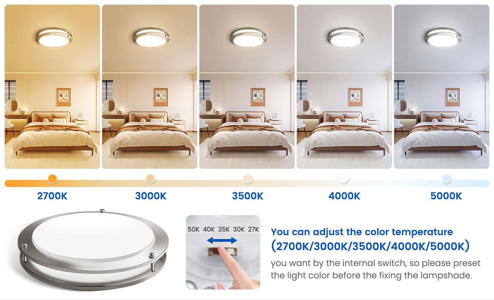 💡【5CCT Color Changeable】With the capability to change between 5 color temperatures (2700K-5000K), Whether you prefer a warm and cozy ambiance or a bright and energetic lighting, this light can effortlessly create the perfect atmosphere for any occasion.