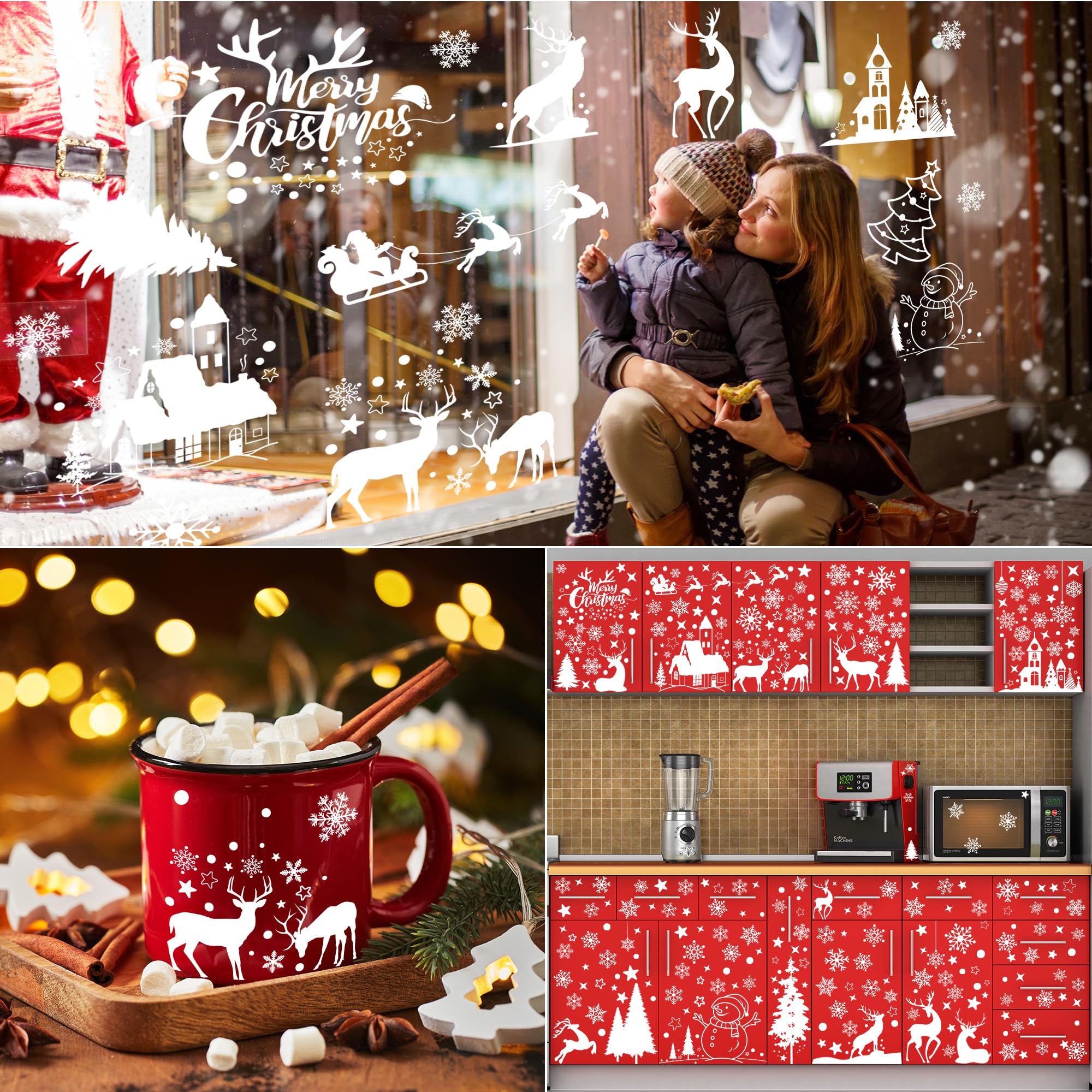 🎄【Deko Weihnachten】Weihnachten deko aufkleber eignet sich für jede saubere, glatte und ebene Oberfläche, wie Fenster, Glas, Spiegel, Tür, Fliesen, Kühlschränke, etc. Diese fensterbilder weihnachten können Familienfeiern, Geschäfte, Büros, Restaurants, etc. dekorieren, um eine festliche Weihnachtsatmosphäre zu schaffen.