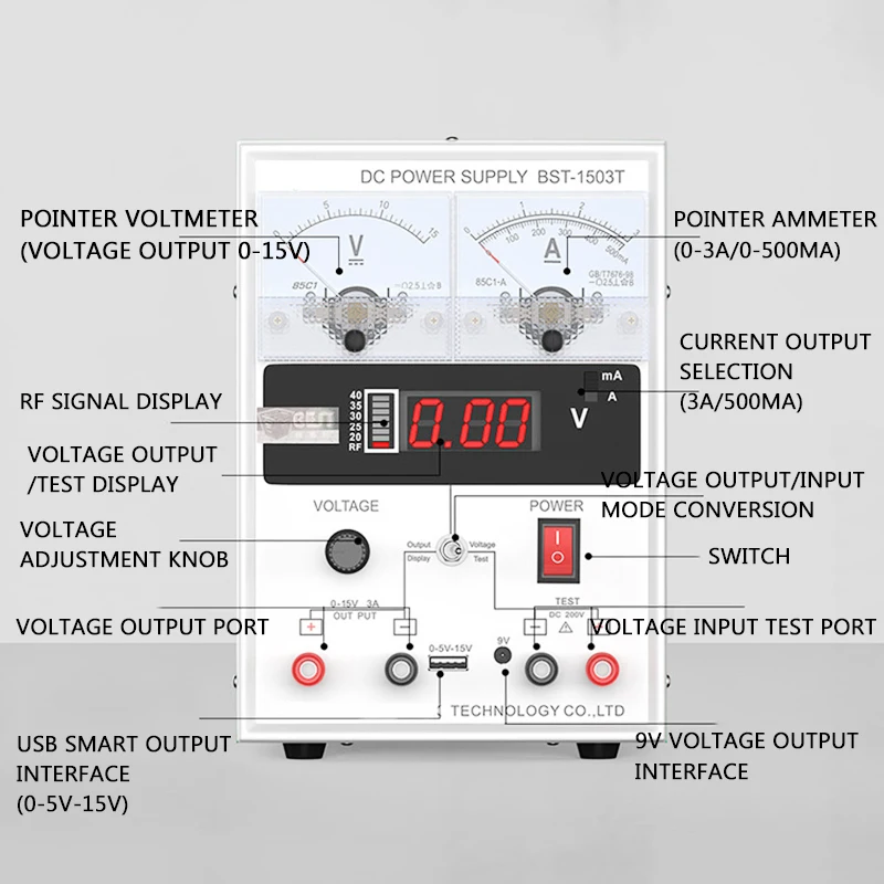 15V3A adjustable DC regulated power supply mobile phone repair power supply 5V USB digital display