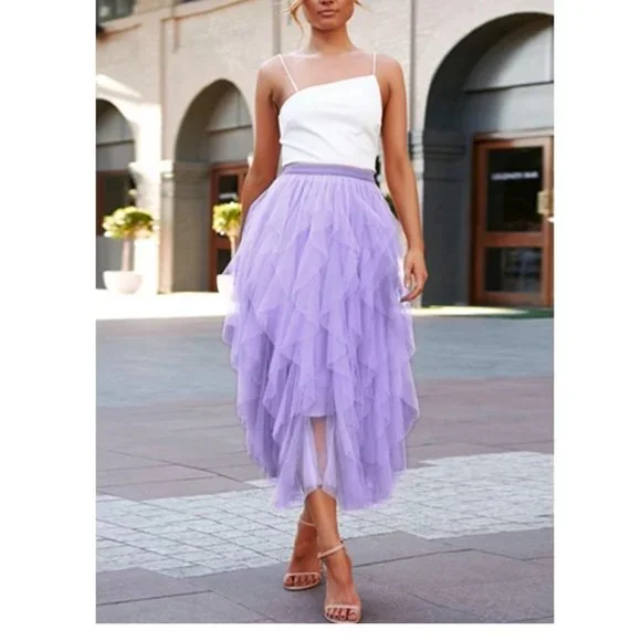 Women's Purple Midi Tulle Skirt Elastic Waist A-Line With Lining Size Small