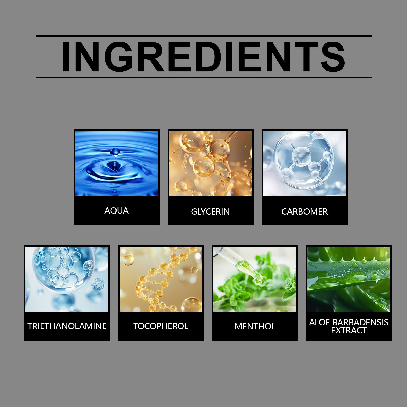 Natural ingredients: vitamin e ,menthol, aqua,soybean,aloe vera