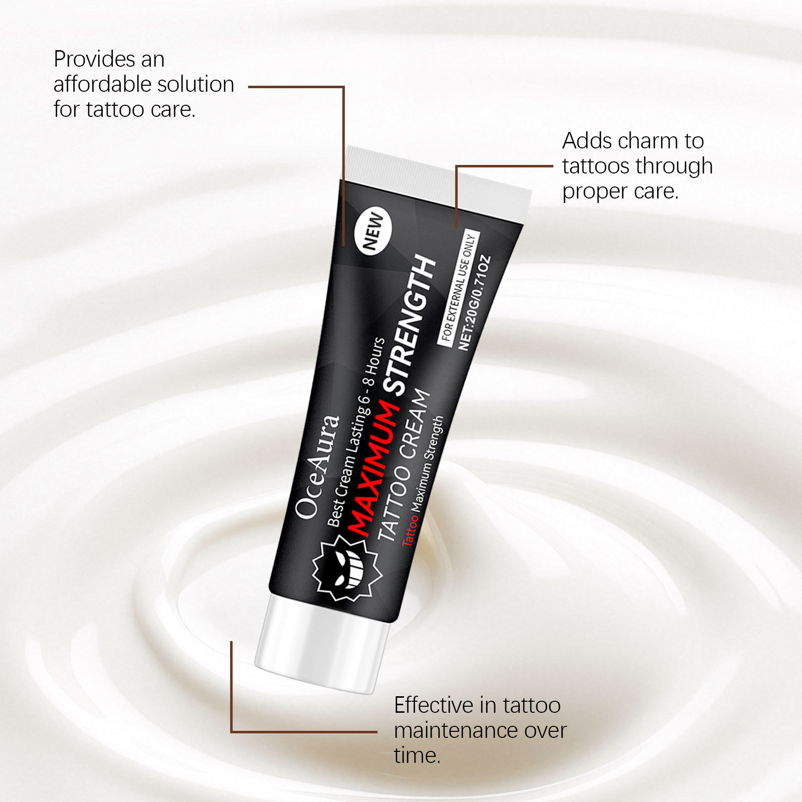 Tattoo Aftercare Cream Gel 20 Grams- Up to 6 Hours Extra Strength for Tattoos (no Numibing)