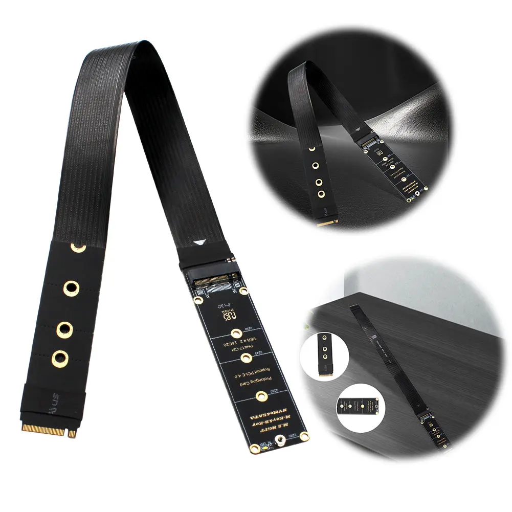 M.2 NVME NGFF M-Key SSD Extension Cable Support PCle4.0 NGFF M-Key PCIe4.0 SSD Extention Card M.2 SSD PCI-Express 4.0 X4 M Key Extender for M.2 2230 2242 2260 2280 SSD Feature: 1. Broad Compatibility: The m.2 nvme ngff m-key ssd extension cable supports both M.2 NGFF M-KEY NVME and M.2 NGFF B-KEY SATA protocols (motherboard SATA support required), ensuring versatile usage across various devices. 2. Flexible Length Options: This m.2 nvme extender accommodates M.2 ports of lengths 2230, 2242, 2260, and 2280, making it compatible with a wide range of SSDs and devices for enhanced flexibility. 3. FPC Design: The ngff m-key pcie4.0 ssd extension card features an FPC flexible circuit board, eliminating rigid cables, and utilizes a four-layer PCB with a gold-plated finish for improved conductivity and durability. 4. High-Speed Data Transfer: Equipped with PHDK's unique design, the m.2 nvme ssd extension cable incorporates PCle high-speed data signal enhancement technology, ensuring fast and reliable data transfer rates. 5. Versatile Connection Options: The solid drive riser card offers both straight and L-shaped host output directions, providing adaptable installation options to suit your specific setup needs. Specification: Origin: Mainland China Color: Black Supported hard disk: Hard disks and devices that support NVME & SATA protocols Type: Support PCle4.0, backward compatible with PCle3.0 & PCle2.0 Compatible systems: Compatible with os / Windows / Linux Product size: 411.00x24.00x5.00mm Product size: 16.18x0.94x0.2inch Model A: The product is straight Model B: The product is L-shaped Note: M.2 NVME NGFF M-Key SSD Extension Cable Support PCle4.0 NGFF M-Key PCIe4.0 SSD Extention Card M.2 SSD PCI-Express 4.0 X4 M Key Extender for M.2 2230 2242 2260 2280 SSD Feature: 1. Broad Compatibility: The m.2 nvme ngff m-key ssd extension cable supports both M.2 NGFF M-KEY NVME and M.2 NGFF B-KEY SATA protocols (motherboard SATA support required), ensuring versatile usage across various devices. 2. Flexible Length Options: This m.2 nvme extender accommodates M.2 ports of lengths 2230, 2242, 2260, and 2280, making it compatible with a wide range of SSDs and devices for enhanced flexibility. 3. FPC Design: The ngff m-key pcie4.0 ssd extension card features an FPC flexible circuit board, eliminating rigid cables, and utilizes a four-layer PCB with a gold-plated finish for improved conductivity and durability. 4. High-Speed Data Transfer: Equipped with PHDK's unique design, the m.2 nvme ssd extension cable incorporates PCle high-speed data signal enhancement technology, ensuring fast and reliable data transfer rates. 5. Versatile Connection Options: The solid drive riser card offers both straight and L-shaped host output directions, providing adaptable installation options to suit your specific setup needs. Specification: Origin: Mainland China Color: Black Supported hard disk: Hard disks and devices that support NVME & SATA protocols Type: Support PCle4.0, backward compatible with PCle3.0 & PCle2.0 Compatible systems: Compatible with os / Windows / Linux Product size: 411.00x24.00x5.00mm Product size: 16.18x0.94x0.2inch Model A: The product is straight Model B: The product is L-shaped Note: M.2 NVME NGFF M-Key SSD Extension Cable Support PCle4.0 NGFF M-Key PCIe4.0 SSD Extention Card M.2 SSD PCI-Express 4.0 X4 M Key Extender for M.2 2230 2242 2260 2280 SSD Feature: 1. Broad Compatibility: The m.2 nvme ngff m-key ssd extension cable supports both M.2 NGFF M-KEY NVME and M.2 NGFF B-KEY SATA protocols (motherboard SATA support required), ensuring versatile usage across various devices. 2. Flexible Length Options: This m.2 nvme extender accommodates M.2 ports of lengths 2230, 2242, 2260, and 2280, making it compatible with a wide range of SSDs and devices for enhanced flexibility. 3. FPC Design: The ngff m-key pcie4.0 ssd extension card features an FPC flexible circuit board, eliminating rigid cables, and utilizes a four-layer PCB with a gold-plated finish for improved conductivity and durability. 4. High-Speed Data Transfer: Equipped with PHDK's unique design, the m.2 nvme ssd extension cable incorporates PCle high-speed data signal enhancement technology, ensuring fast and reliable data transfer rates. 5. Versatile Connection Options: The solid drive riser card offers both straight and L-shaped host output directions, providing adaptable installation options to suit your specific setup needs. Specification: Origin: Mainland China Color: Black Supported hard disk: Hard disks and devices that support NVME & SATA protocols Type: Support PCle4.0, backward compatible with PCle3.0 & PCle2.0 Compatible systems: Compatible with os / Windows / Linux Product size: 411.00x24.00x5.00mm Product size: 16.18x0.94x0.2inch Model A: The product is straight Model B: The product is L-shaped Note: 1 x Extension Cable 1 x Extension Cable 1 x Extension Cable |