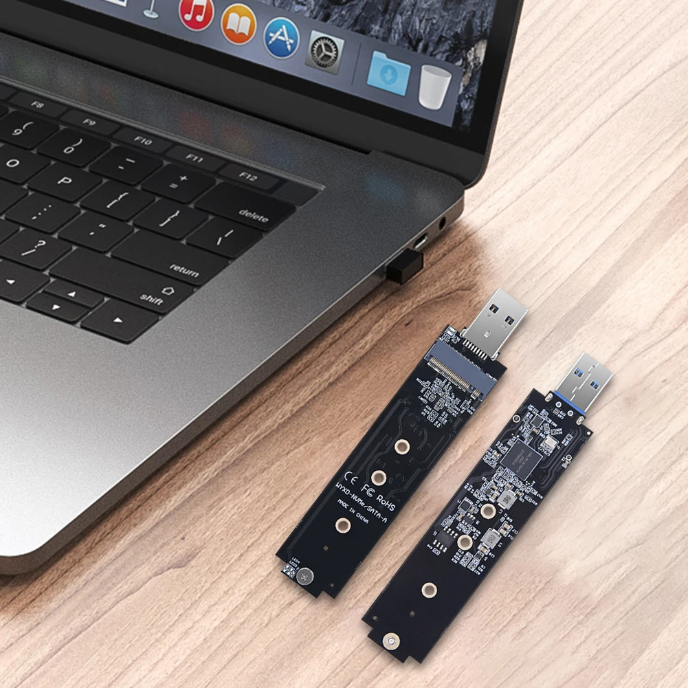| M.2 SSD SATA/NVMe To USB 3.1 Adapter B+M Key/M Key M2 To USB 3.1 SSD Riser Card Board 10Gbps USB3.1 Gen 2 NVMe PCIe To USB3.1 Type A Adapter for Samsung 970 960 Series Feature: 1. Cable-free M.2 NVME SSD to USB Adapter: This SSD adapter allows you to convert your M.2 NVME SSD into a portable storage solution without the need for any cables. It offers convenience and ease of use for on-the-go storage needs. 2. 10Gbps USB 3.1 Gen 2 bridge chip: Equipped with a high-performance 10Gbps USB 3.1 Gen 2 bridge chip, this m.2 to usb 3.1 adapter card ensures speedy data retrieval and backup operations. You can quickly access and transfer files with blazing-fast speeds. 3. Plug-and-play Hot Swap: With plug-and-play functionality and hot swap support, this m2 nvme SSD adapter converter provides seamless compatibility with various M.2 NVME SSD brands, including for Samsung 970 series, 960 series, WD Black, Intel, and Crucial. It eliminates the hassle of driver installations. 4. Full Potential of SSD Performance: This m2 to usb 3.1 ssd riser card board allows you to harness the full performance potential of your SSD without the constraints of an enclosure. By directly connecting your SSD to the adapter, you can achieve optimal speeds and efficiency. 5. Utilizes JMS581D Chip: The m.2 SSD sata/nvme to usb 3.1 adapter is powered by the JMS581D chip, which utilizes low power consumption technology. If there are no read or write operations within 10 minutes, the SSD power will automatically shut down. This feature helps prolong the SSD's lifespan and conserves energy. Specification: Origin: Mainland China Model Number: SSd Adapter Package: Yes Chip: JMS581D Material aluminum alloy Working environment: - 20 - + 70°C System support: WinXP/win7/win8/win10/Linux/for MAC Gross weight: 25g Product size: 110*23mm 4.33x0.91inch Bag size: 150*105mm Note: 1 X SSD Adapter 1 X Screwdriver 1 X Screw