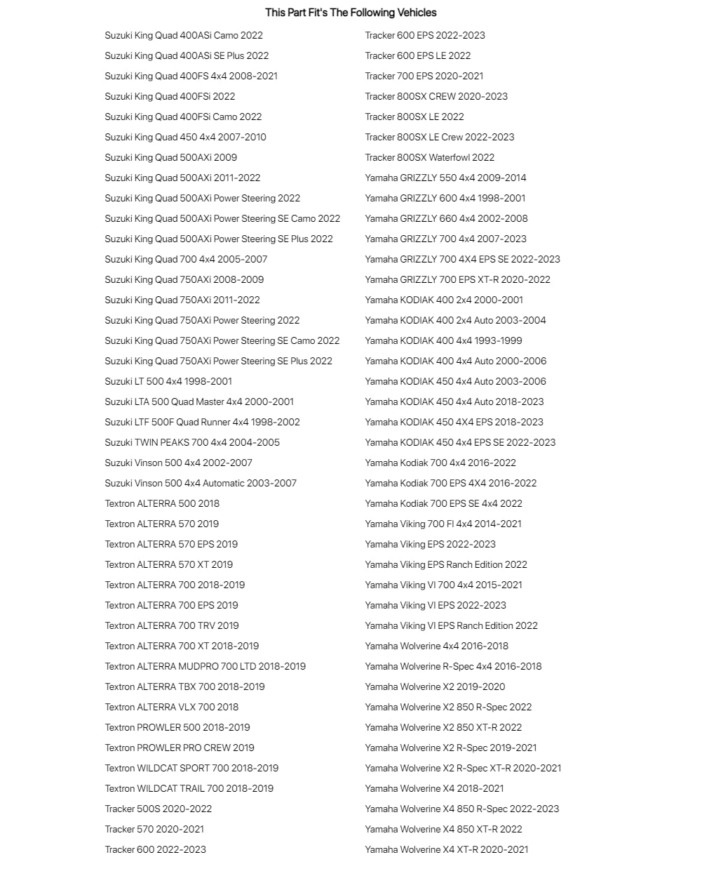 • Also Fits