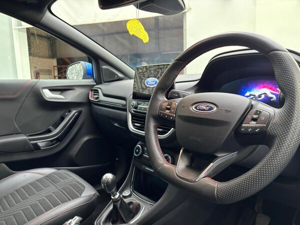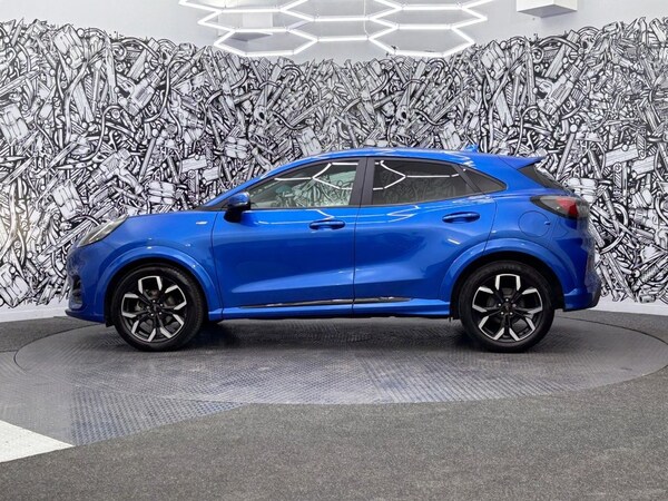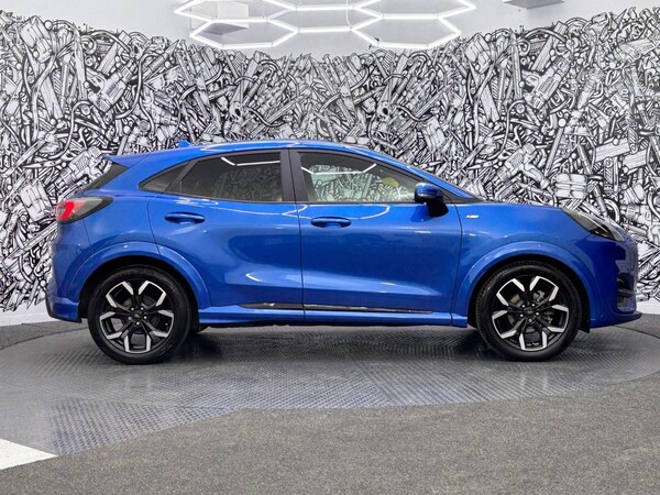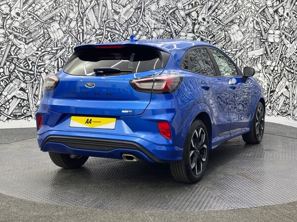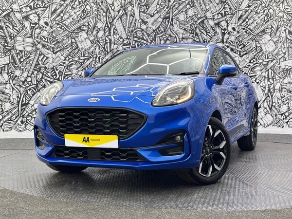 With only 19759 miles on the clock, this 2022 Ford Puma ST-Line X is barely broken in. The Puma, with its 1.0L petrol engine, combines sporty styling with everyday practicality. The ST-Line X trim adds a touch of flair and enhanced features to the already appealing Puma package. Stay connected on the move with Ford SYNC 3 Navigation, offering seamless smartphone integration via Android Auto and Apple CarPlay, as well as Bluetooth connectivity. Enjoy a premium audio experience with the B&O sound system. This Puma also boasts several features designed for convenience and ease of use. Rear parking sensors, including parking assistance, make maneuvering simple. The wireless charging pad and electronic air temperature control, which includes climate control, add a touch of modern convenience. With a fuel economy of 52 mpg, this Puma is more efficient than similar vehicles. It also benefits from low CO2 emissions, making it a responsible choice for the environmentally conscious driver. The MOT is valid until January 2026. Welcome to MotorTrustUK, where exceptional standards and customer satisfaction are at the forefront of our service. All of our retail vehicles undergo a rigorous 128-point mechanical inspection, independently carried out by a qualified AA technician, to ensure the highest level of reliability and safety. Should any vehicle have less than six months remaining on its MOT or be due a service, these requirements will be addressed prior to delivery. For added reassurance, we include a complimentary nationwide warranty with all qualifying vehicles. With approximately 1,500 vehicles currently in group stock, a number that continues to grow, we are pleased to offer part exchange services, accept all major credit and debit cards, and provide flexible finance options, including HP, PCP, and subprime solutions. Nationwide delivery can also be arranged by quotation. While every effort is made to ensure accuracy in vehicle specifications and descriptions, details may vary; we encourage all customers to speak with a member of our sales team to confirm key information such as MPG figures, available keys, or any factory modifications. To ensure smooth processing and support, an administrative fee is applied to all completed sales. We look forward to assisting you in finding your next vehicle with confidence at MotorTrustUK. .18in Alloy Wheels - 5-Spoke - Matt Black Machined Finish, ABS - Anti-lock Braking System, Acoustic Laminated Windscreen, Active Grille Shutter, Automatic Dimming Rear View Mirror, Automatic Headlights with Rain-Sensing Wipers and Auto High Beam, B&O Premium Audio System and Ford SYNC 3 Navigation, Carbon-Look Interior Deco Spears, Centre Console with Armrest - Stowage, Courtesy Lights - Ambient LED Courtesy Lighting - Single Colour, Cruise Control - Lane Keeping Aid and Lane Departure Warning, Driver Impairment Monitor, Driver and Passenger Seat Lumbar and Height Adjustment, ESC - Electronic Stability Control and Hill Start Assist, Electric Windows - Front and Rear, Electronic Air Temperature Control - EATC, Emergency Brake Warning - Automatic Hazard Warning Lights, First Aid Kit Strap, Floor Mats - Front and Rear, Ford Easy Fuel System, Ford MegaBox Extended Bootspace, Ford Power Starter Button, Front Bumper - Unique ST-Line Sport Design - Body Colour, Front Fog Lights with Cornering lights and LED Rear Lamps, Front Seats - Sports Style, Full Digital 12.3in Instrument Cluster, Gearshift Knob - Soft Feel with Red Stitching, Headliner - Deluxe, Instrument Panel - High Level, Intelligent Speed Assistance, Large Rear Spoiler - Body Colour with Centre High Mounted Stop Light, Locking Wheel Nuts, Lower Bodyside Moulding - Body Colour, Post Collision Braking, Power Steering, Power-Foldable Heated Door Mirrors with Puddle Lamps, Pre-Collision Assist with Autonomous Emergency Braking and Pedestrian-Cyclist Detection, Privacy Glass, Projector Headlamps with LED Daytime Running Lights, Puma Badge, Quickclear Heated Windscreen, Rear Bumper Body Colour - Diffuser, Rear Parking Sensors, Rear Seats - 2-Way Head Restraint Up-Down, Rear Seats - Second Row 60-40 Folding Seats, Remote Central-Double Locking, Restrain Device Pack, ST-Line Badge, ST-Line Body Styling Kit, ST-Lined Flat-Bottomed Premium Sensico Steering Wheel - Handbrake and Aluminium Gear Knob, Selectable Driving Modes - Normal - Eco - Sport - Slippery and Trail, Speed Limiter, Speed Sign Recognition, Sports Suspension, Stainless Steel Pedal Covers with Rubber Inserts, Thatcham Alarm, Trip-Fuel Computer, Tyre Inflation Kit, Tyre Pressure Monitoring System - TPMS, Wireless Charging, Wireless Charging Pad with Electronic Air Temperature Control EATC, Desert Island Blue, Partial Premium Sensico - Black with Red Stitching