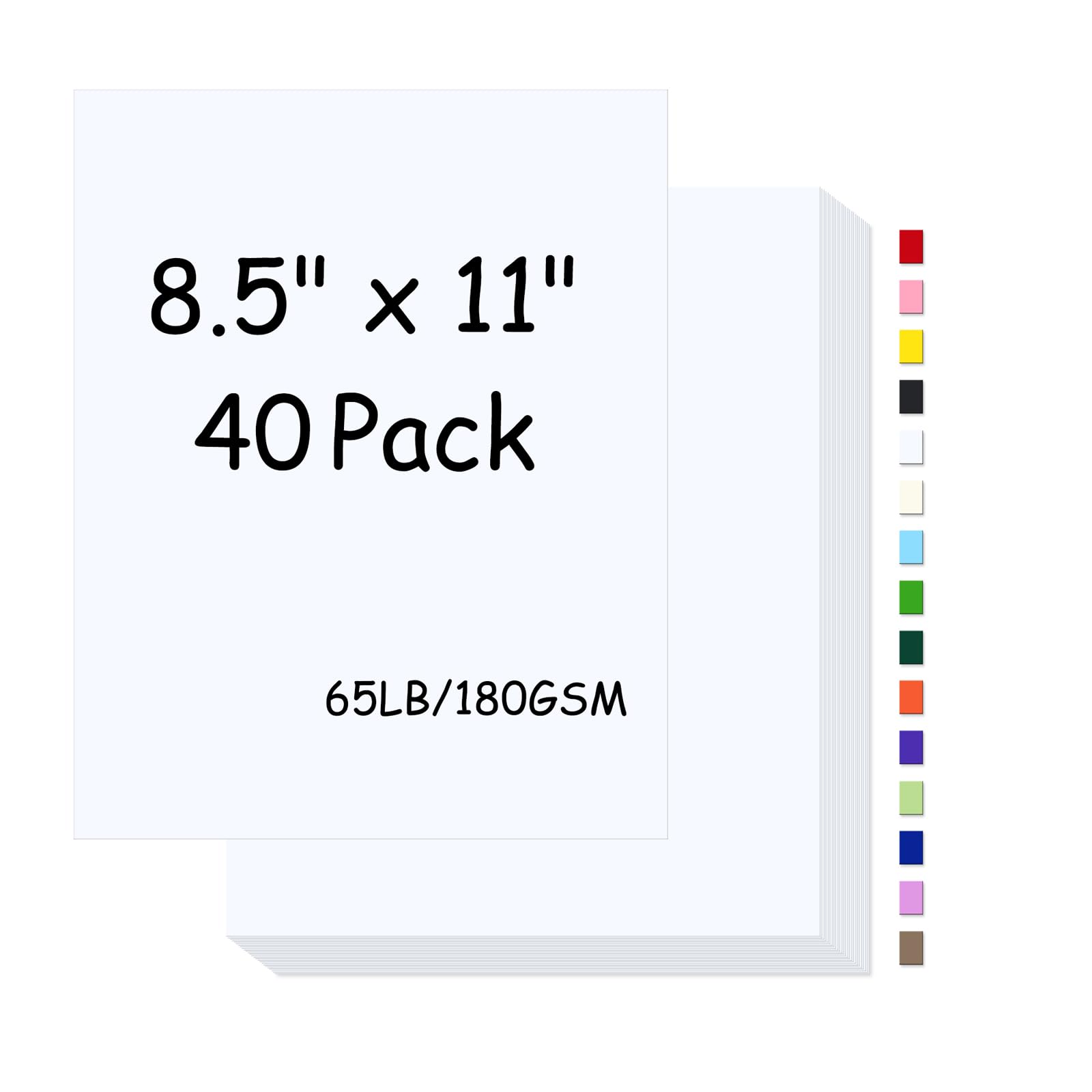 SIZE---White cardstock 8.5 x 11 inch,is made from heavyweight 65lb/180GSM offset paper with a moderate smooth matte finish, perfect size for a group project of cardmaking crafter.It was also easy to print on and cut.Unleash your creativity by cutting, folding and pasting to your favourite size or shape.Cardstock paper absorbs ink evenly and has smooth strokes for all kinds of pens.