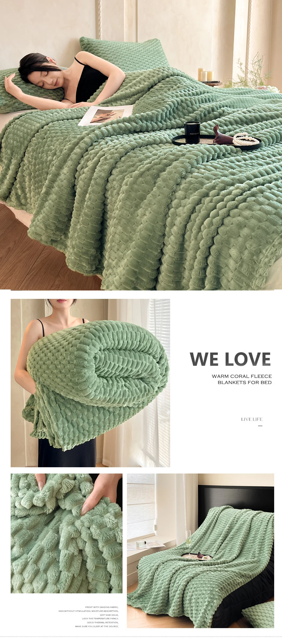 Winter warm coral fleece blankets for beds thick plaid flannel blanket fluffy plush soft cozy quilt thermal bed sheet 150