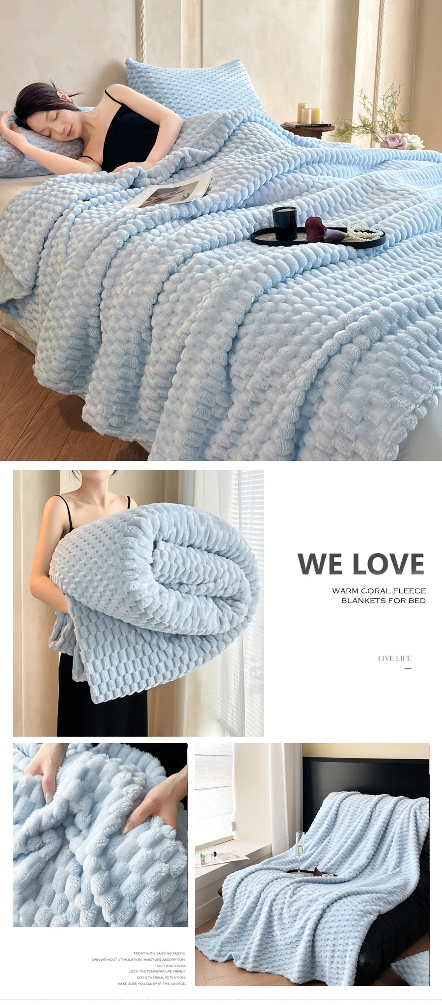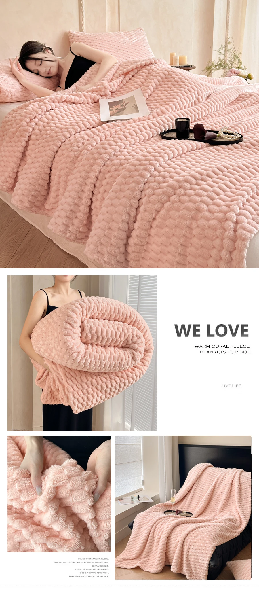 Crafted from premium coral fleece, this blanket offers unparalleled softness and warmth, perfect for winter nights.