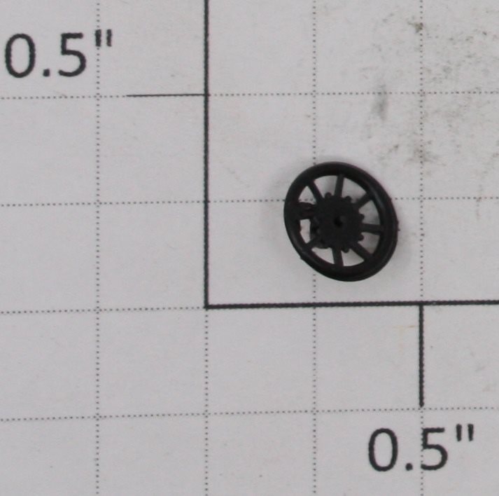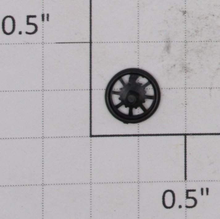 This listing is for fifty (50) units of this product. See photo for description. Condition may vary due to age and wear. Approx .28" wheel diameter. Black plastic.