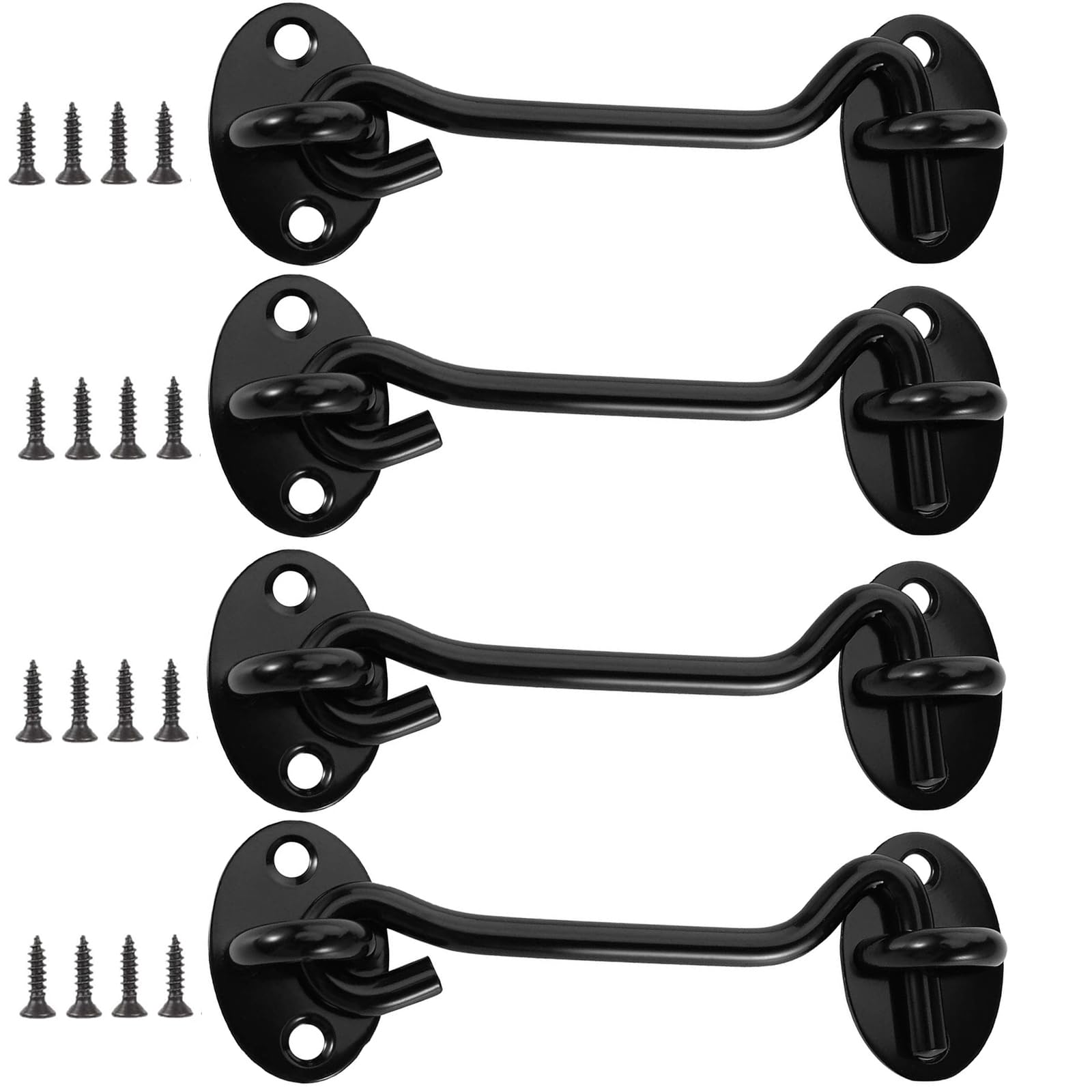 The hook and eye latch used for locking windows, shutters, garage and dog shed doors. The hook latch also can be used as a door or window stopper.