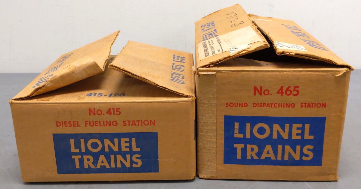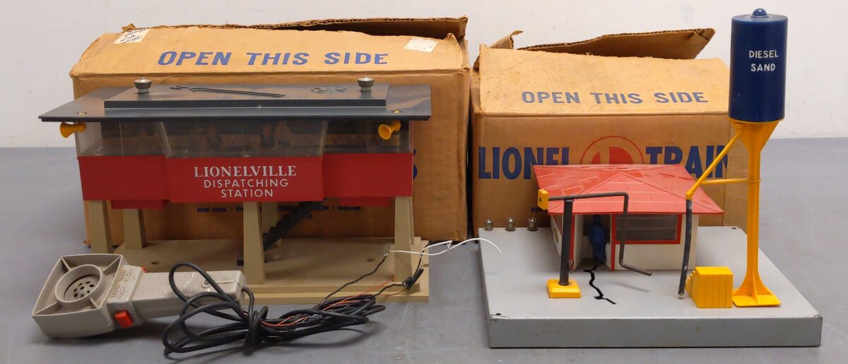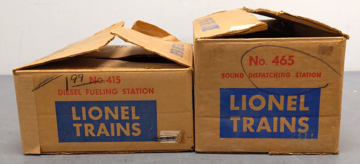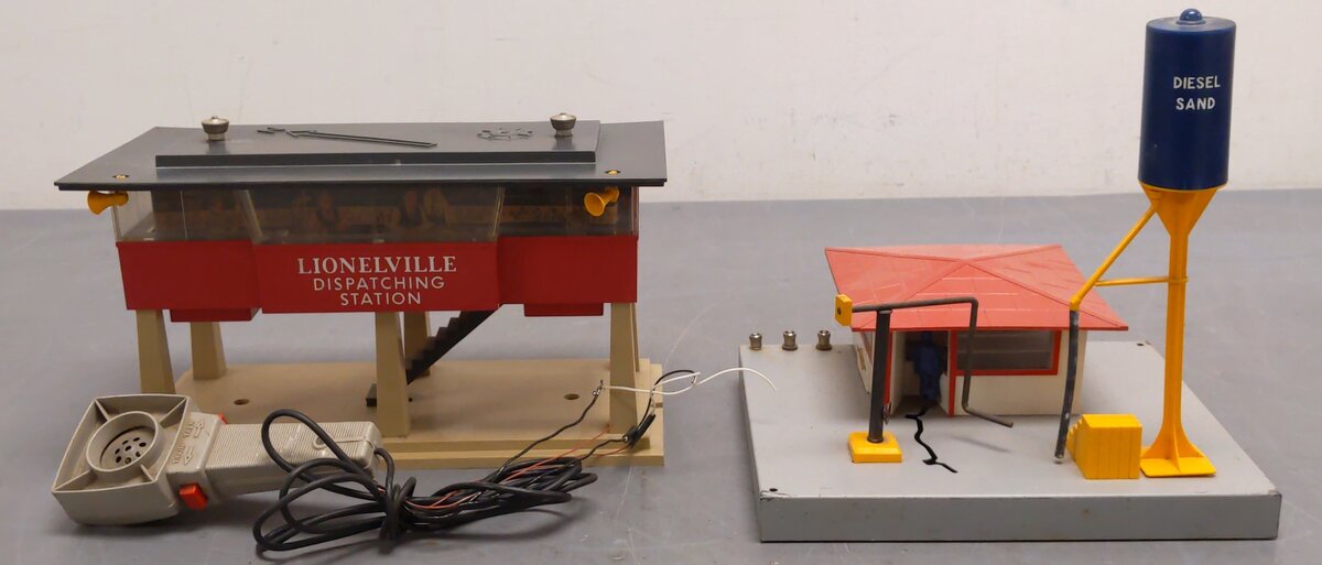 Here is a lot of a Lionel Vintage O #415 Diesel Fueling Station & #465 Sound Dispatch Station. Both stations feature plastic construction & electrical operation.