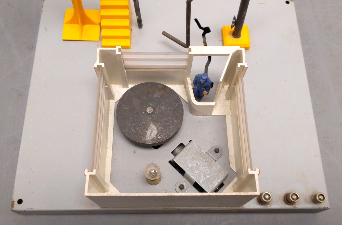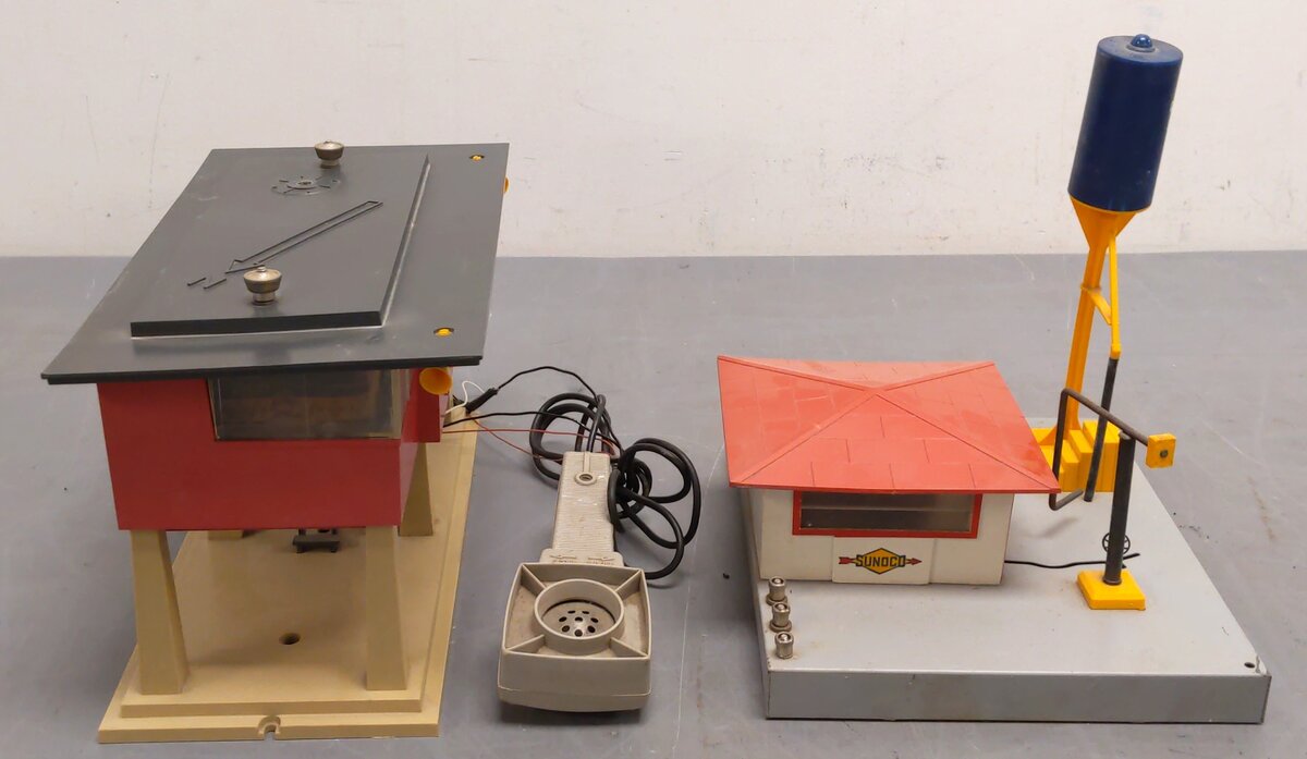 This item has been graded per TCA standards C-6: Very Good based on visual appearance. There are several scratches across the plastic construction of both stations. There are light signs of rust along the few metal components across the bodies of both stations. The #465 station is missing the yellow roof radar array & he included microphone shows heavy scratches across the plastic shell. The microphone wire to the #465 station has been stripped & poorly rewired. The #415 fueling station is missing the activation button & wires. The overall appearance of this item may be improved with a gentle and thorough cleaning. The original boxes are included for both stations. The instruction manuals are not included for both stations. Please check the photos for a detailed look at this item. Overall condition is Very Good.