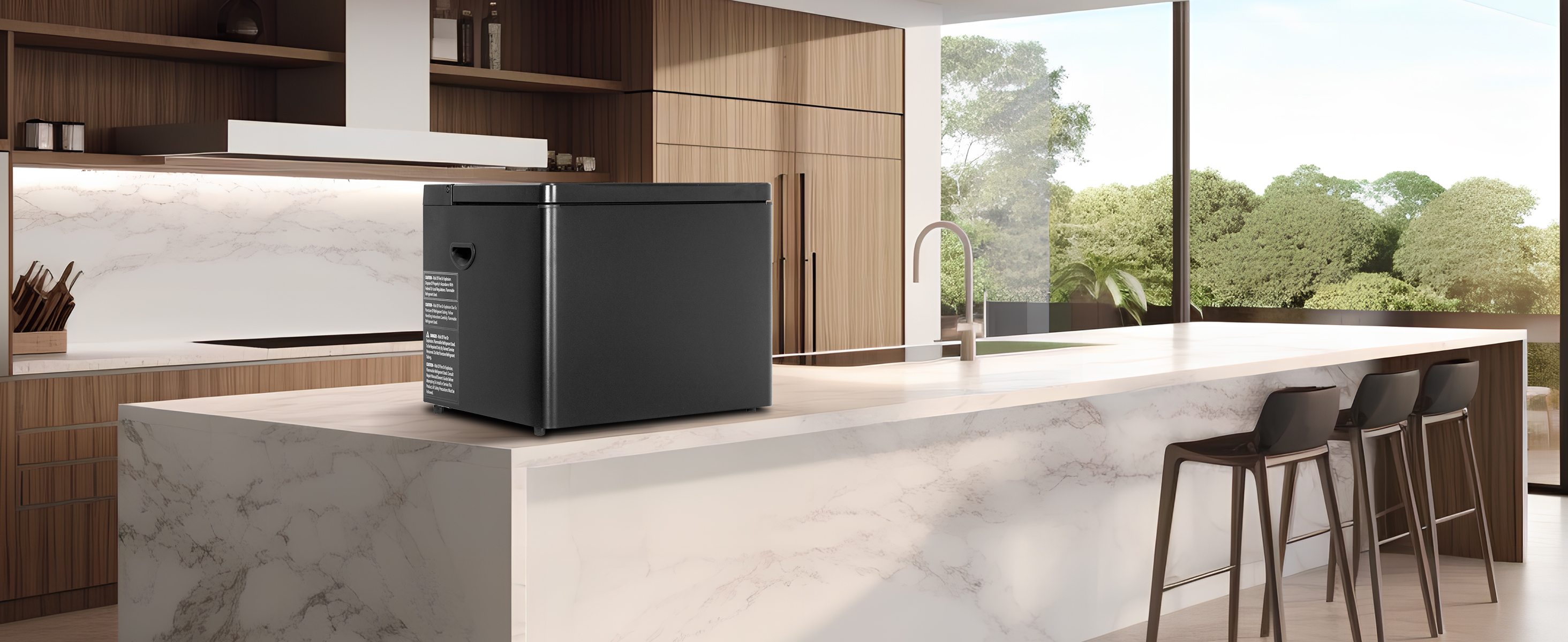 Er arbeitet hauptsächlich mit LPG (Propan) und befreit Sie vollständig vom Stromnetz. Dadurch kommt es auch bei Stromausfällen, Stürmen oder Blackouts nicht mehr zu verdorbenem Essen.