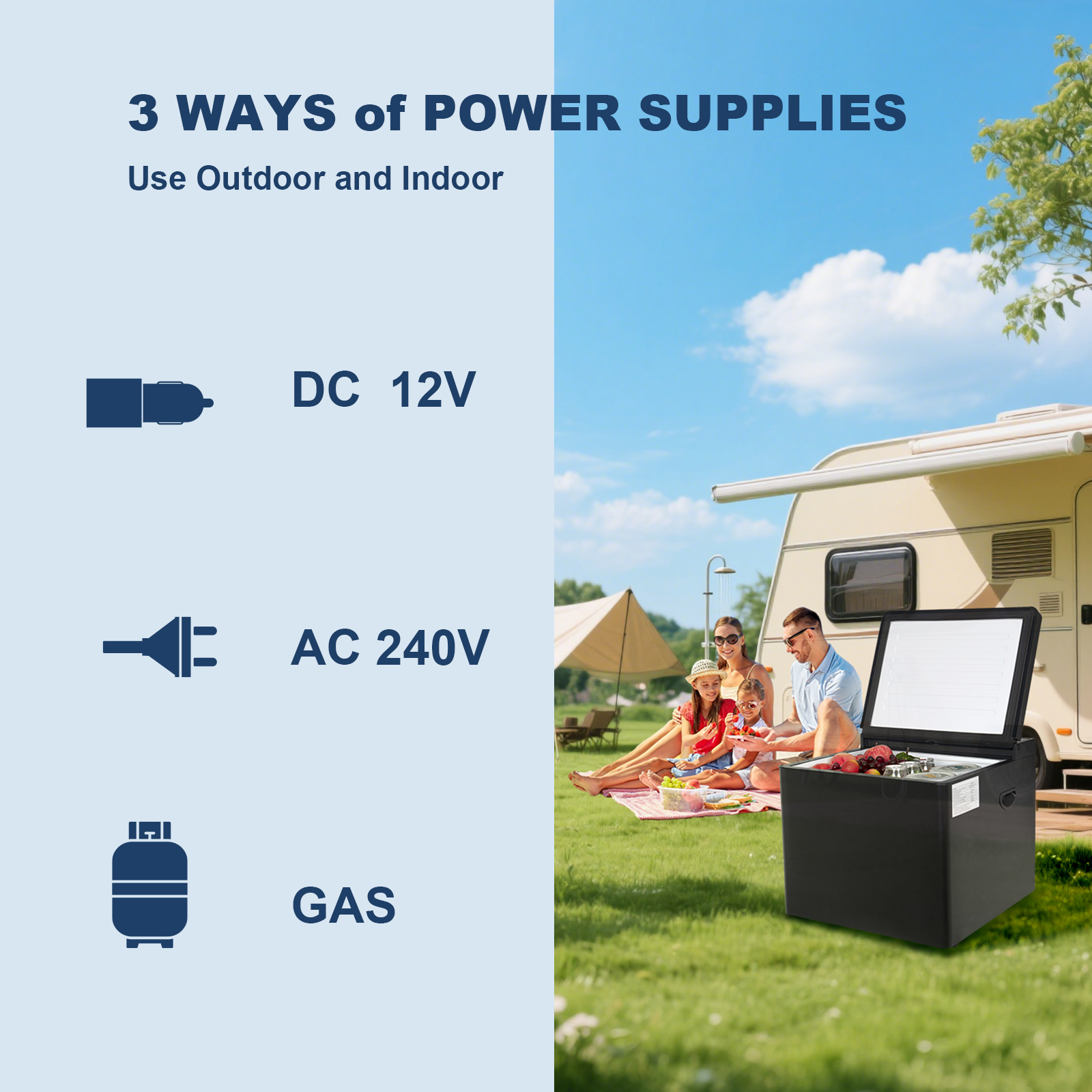 Mit Maßen von 500 (B) × 493 (T) × 442 (H) mm ist dieser Gas-Kühlschrank ein kompakter Mini-Propan-Kühlschrank, der sich hervorragend für kleine Räume oder Outdoor-Ausrüstungen wie Camper, Wohnmobile oder Lastwagenanhänger eignet.