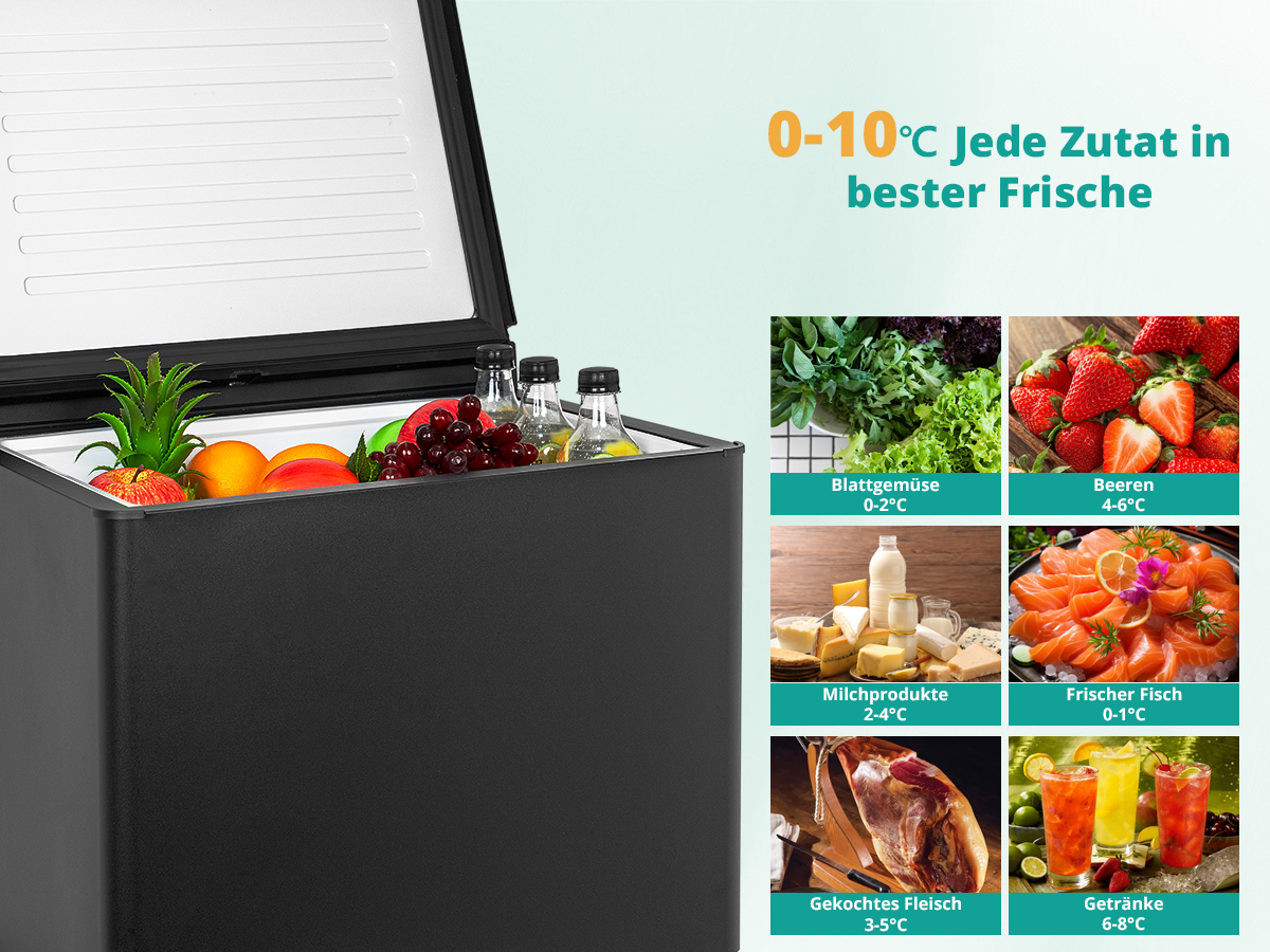 Mit einem freonfreien Absorptionskühlsystem läuft dieser zuverlässige Propan-Kühlschrank geräuschlos mit 0 dB und verursacht keine Verschmutzung – ideal für schlaffreudige Personen sowie Haushalte mit Kindern oder älteren Menschen. Er eignet sich daher perfekt für Schlafzimmer, Hütten oder jeden Ort, an dem Ruhe und Stille geschätzt werden.