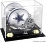 The Dallas Cowboys golden classic logo mini helmet display case comes with a black acrylic base, gold risers and a mirrored back. It is made of 1/8" thick acrylic and features a clear acrylic removable lid with engraved team logo. Perfect for a collectible mini helmet. Officially licensed by the National Football League. Inner measurements: 8" x 5" x 6". Outer dimensions: 9 1/2" x 7" x 7 1/2". Memorabilia sold separately.