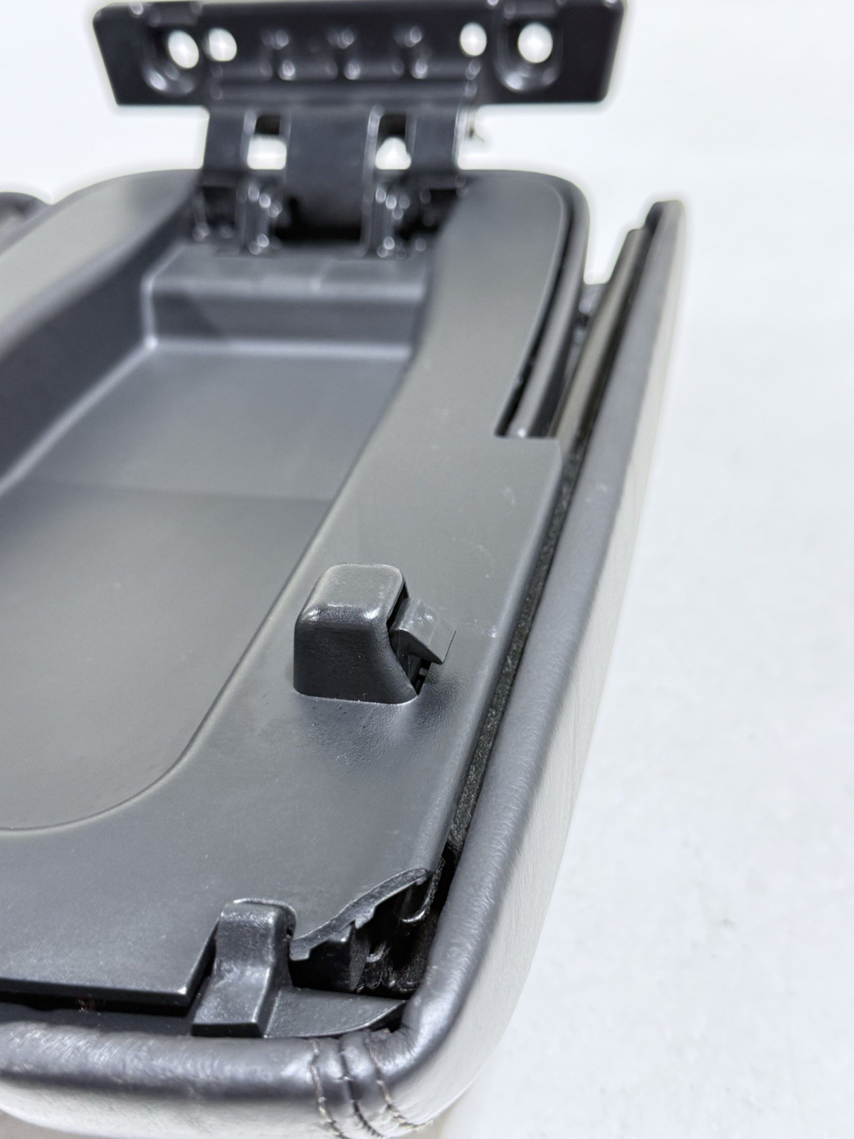 Condition is fair. The arm rest slides back and forth just fine but does NOT unlock to lift up. Handle needs to be replaced!!! The cable that is releasing the 2 latches on the sides to allow the arm rest to go up is not holding in place due to clip inside the handle that holds the end of the cable in place is broken so when pulling the handle the cable is not engaging, new handle or handle from your old console will solve the issue, easy to replace.