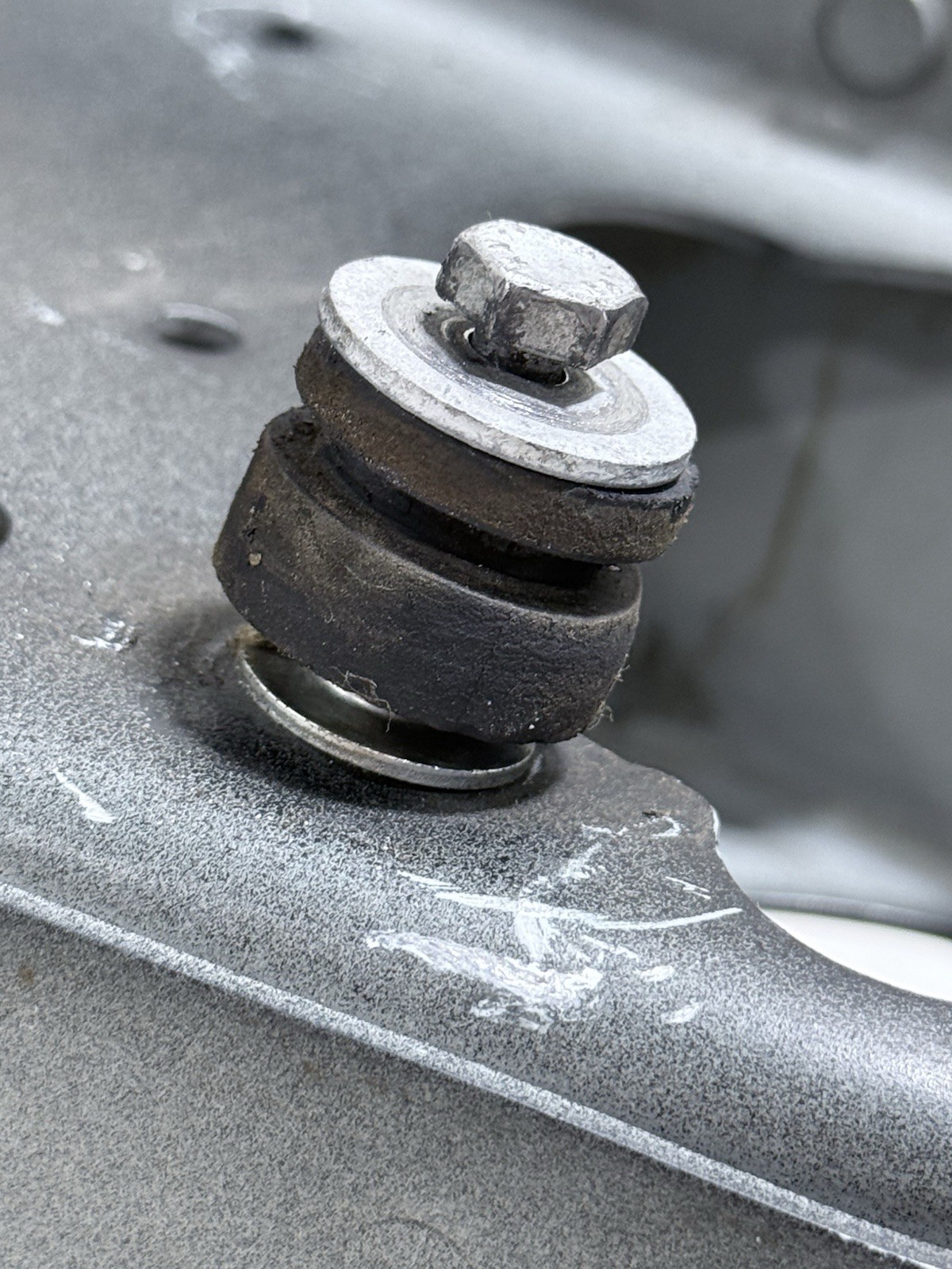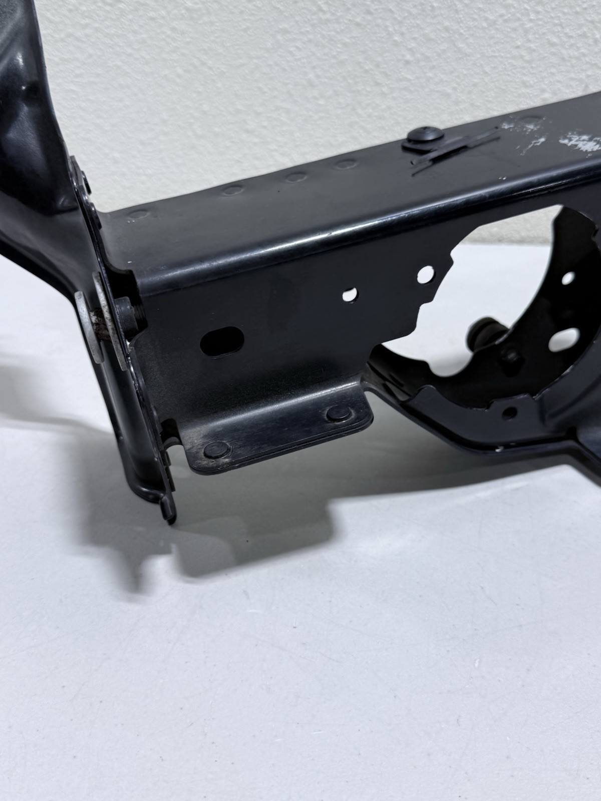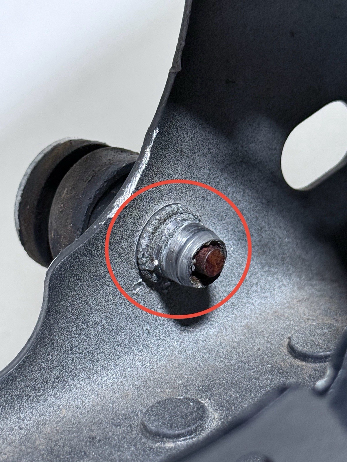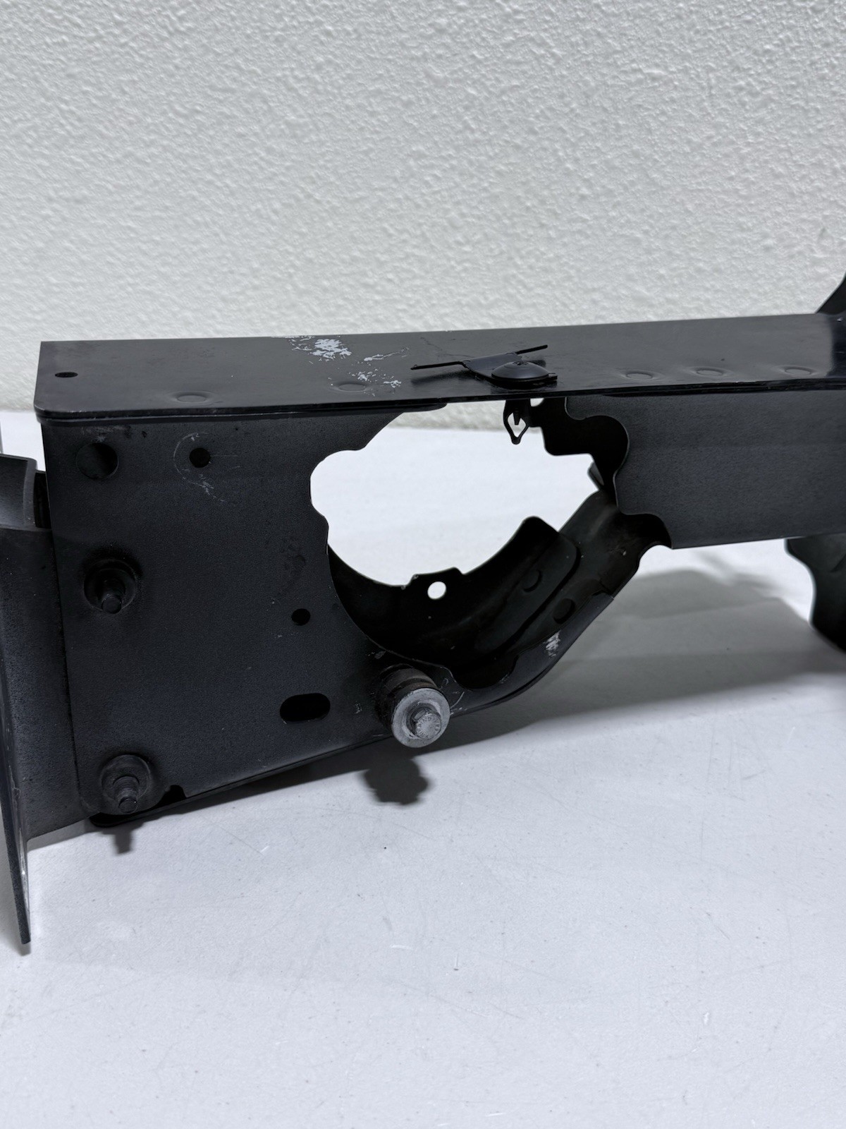 Bolt that is shown in photos is bent and rusted, when attempting to remove it its just spin in one spot as the welded thread in the back is loose. Over all the bracket in good shape and straight.