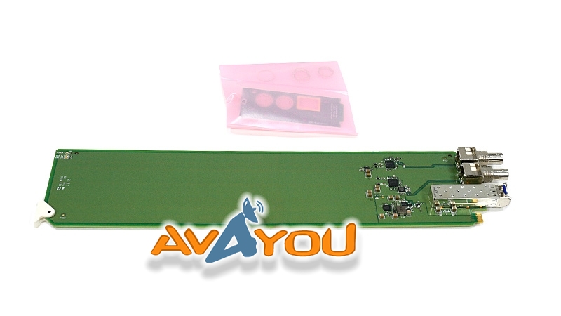 This module is designed to simultaneously convert SDI to optical fiber and optical fiber to SDI. It automatically switches between SD, HD and 3Gbps HD-SDI video standards and each direction is completely independent.
