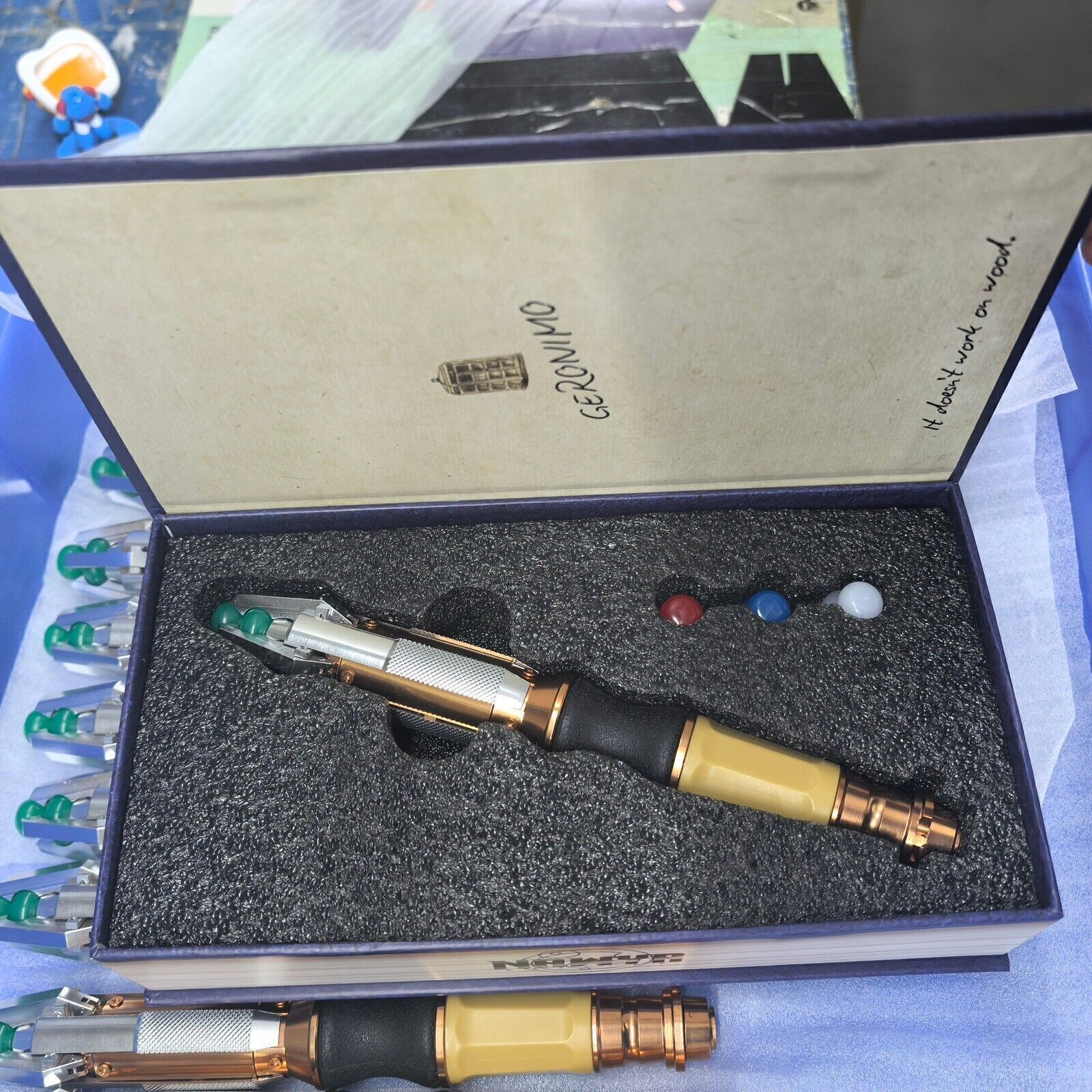 The driver has a sound effect switch at the bottom of the driver, this time equipped with four sound effects, respectively, press and hold the black button 1, 2, 3, 4 times. The fourth for the 2010 Christmas Special: A Christmas Carol appeared in the sonic screwdriver ‘fishing’ sound effects, the sound effects only need to be pressed out to release the hand will continue to sound (is normal, not bad)