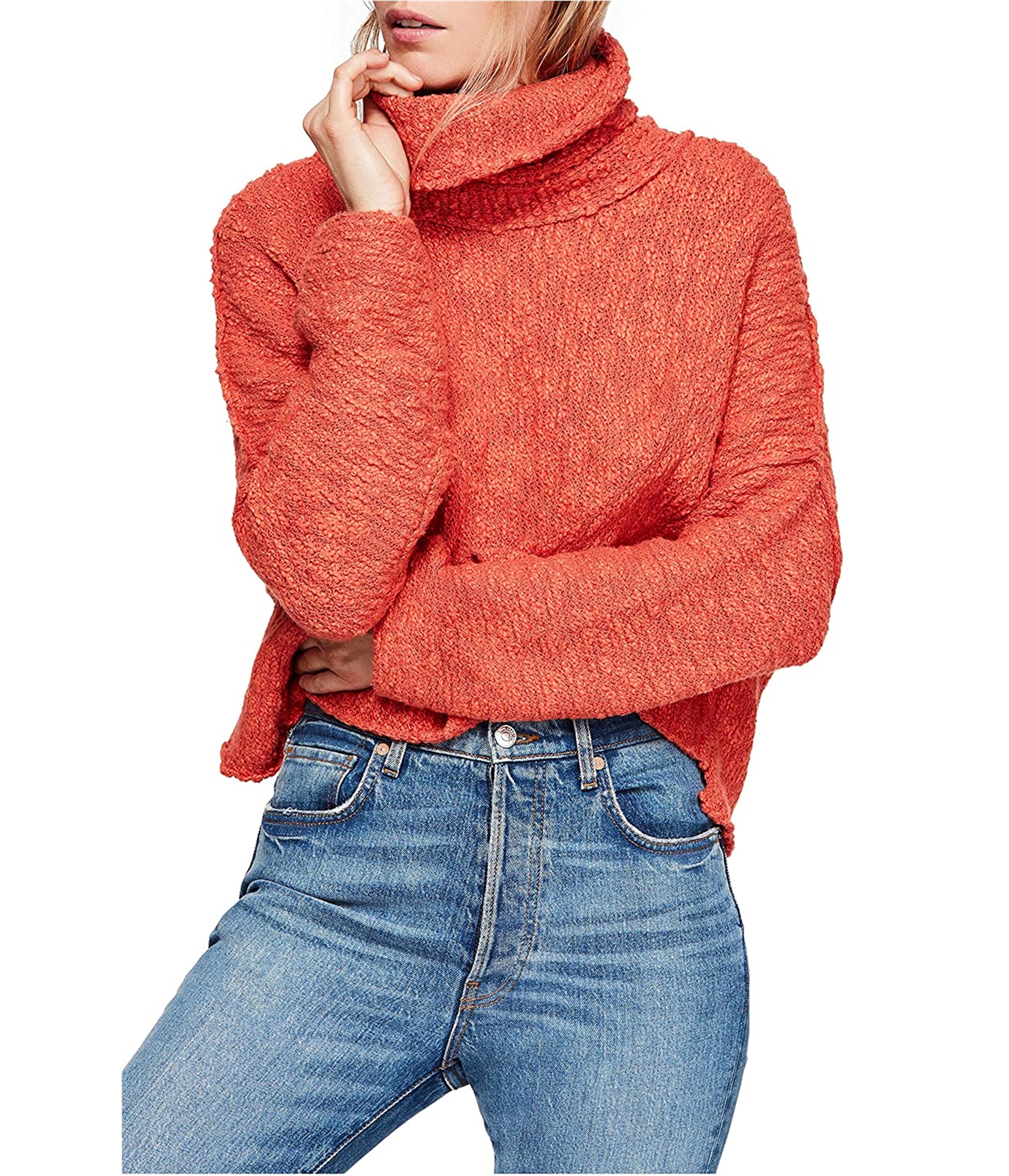 Free People Womens Big Easy Cowl Neck Pullover Sweater, pink, XS