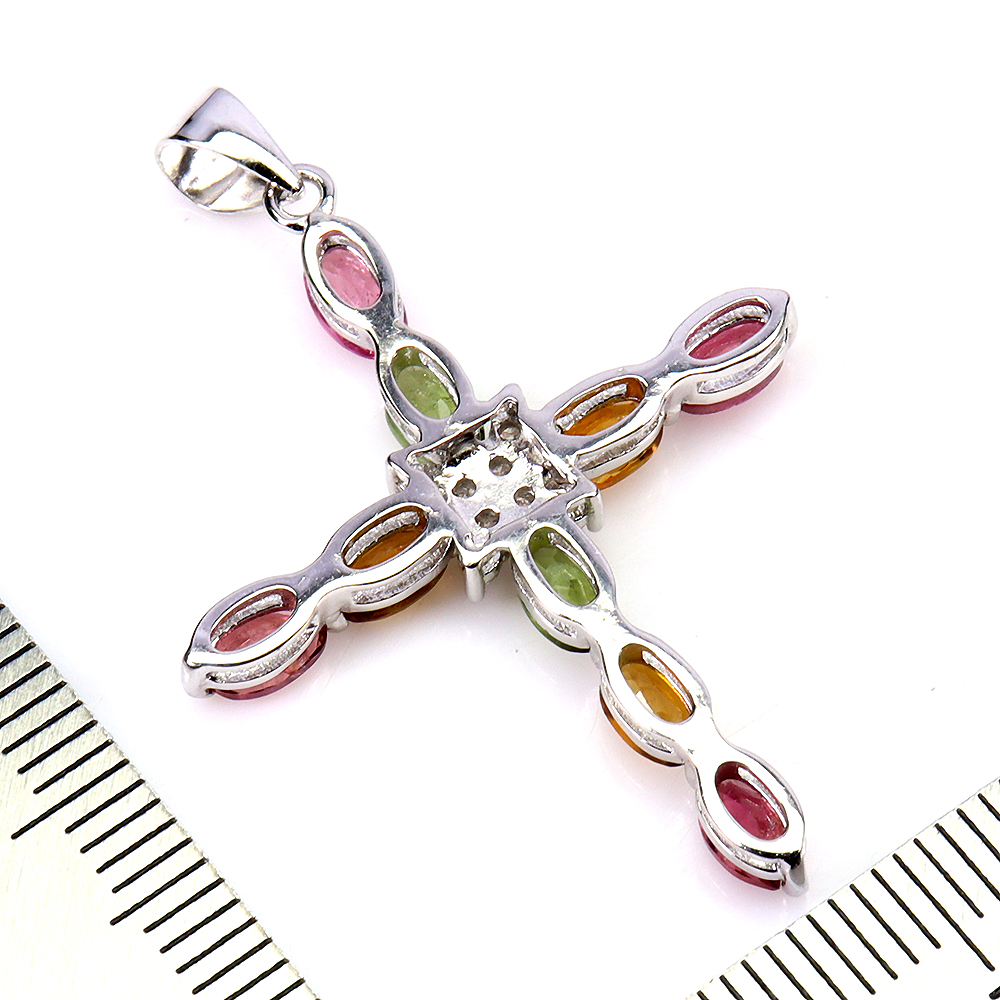 Pendente In Argento Sterling 925 Ovale Tourmalina 5x3mm Croce Gioielli