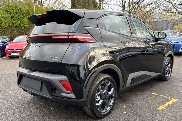 Retail price / discount showing includes a £3430 finance deposit contribution from BYD UK from a vehicle is purchased on a PCP BYD Stoke are proud to present this stunning BYD Dolphin Surf 43.2kWh Boost finished in the head turning Apricity White . The Dolphin Surf Boost has a rather impressive range of up to 200 miles and is capable of Rapid charging from 10% - 80% in up to 30 minutes. By choosing this vehicle, which is ULEZ and CAZ compliant, you and the environment will benefit from reduced emissions, cleaner air in urban areas, and lower running costs. Externally, the dolphin surfs headlights feature clean, crisp lines, consisting of six angled light strips. The compact EV also has daytime-running lights to create an overall sharp and sophisticated look. The integrated roof spoiler enhances its sporty look adding to its aerodynamic profile, helping to improve efficiency, and contributing to excellent range. Internally, the Dolphin Surfs smart cabin is packed with lots of great technology. The dashboard features the renowned 10.1 inch rotational display which is equipped with both Android Auto as well as apple Carplay. The Surf also features HEY BYD allowing you to access many key functions without taking your hands of the steering wheel. For a compact EV there is plenty of space regardless of whether youre sitting in the black and grey vegan leather Front sports seats or in the spacious rear cabin. As always safety is paramount and in this BYD Dolphin Surf it...