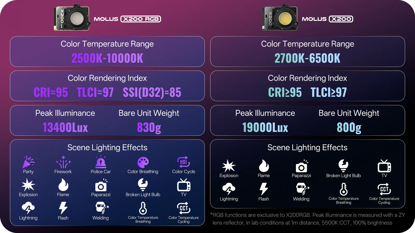 Please note : X200 is Bi-Color , X200 RGB is full Color