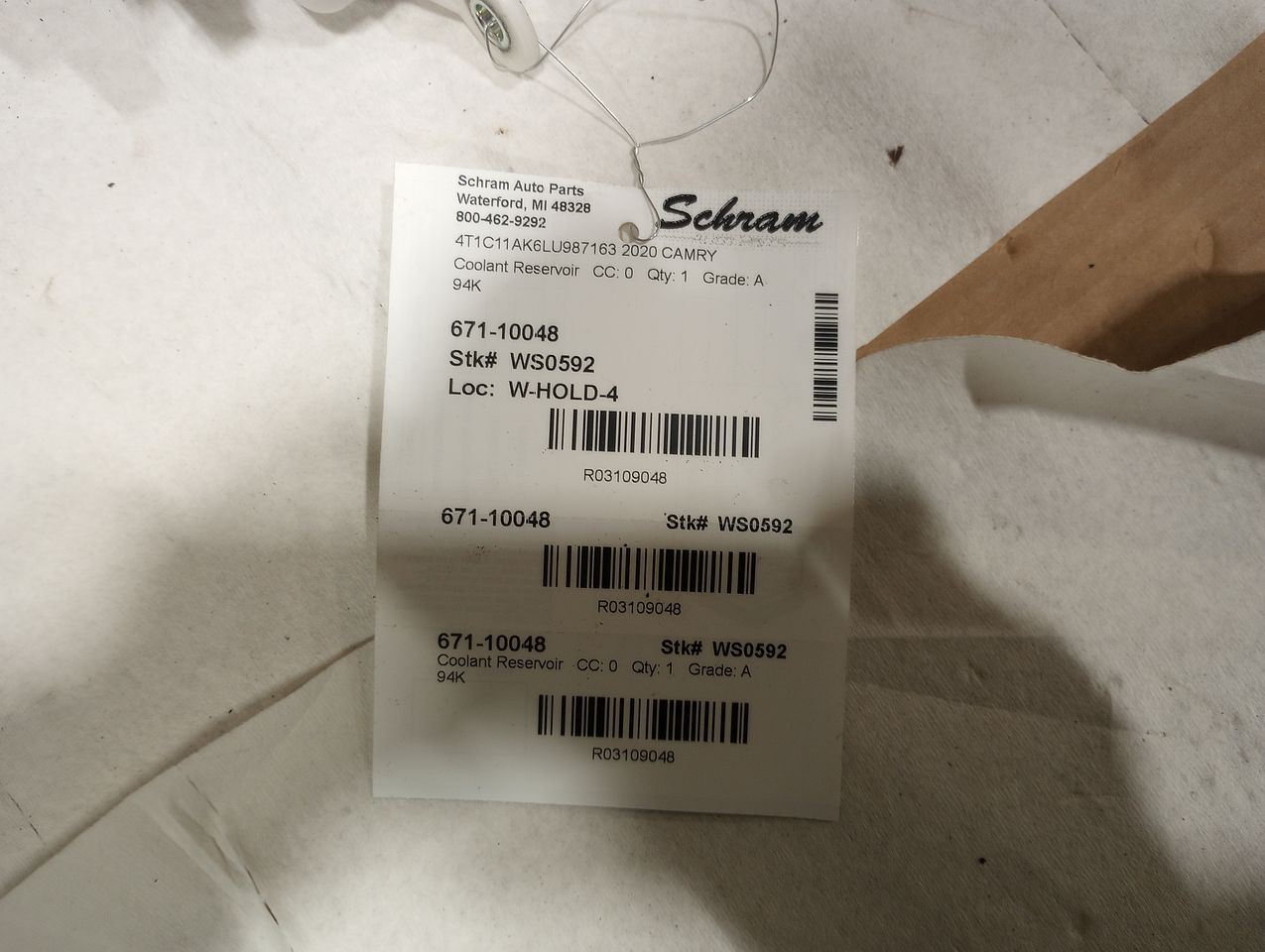 94K Replacement Coolant Reservoir for Your Vehicle Trust in OEM Quality from Schram Auto Parts Ensure Perfect Fitment This listing is for a Coolant Reservoir. Confirming fitment is essential, and we're here to assist. Utilize the part number, detailed pictures, and provided description to verify compatibility with your vehicle. Why Choose Schram Auto Parts? Upgrade your vehicle's cooling system with confidence. Choose Schram Auto Parts for dependable parts and exceptional service.