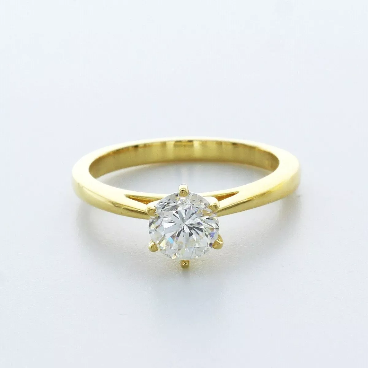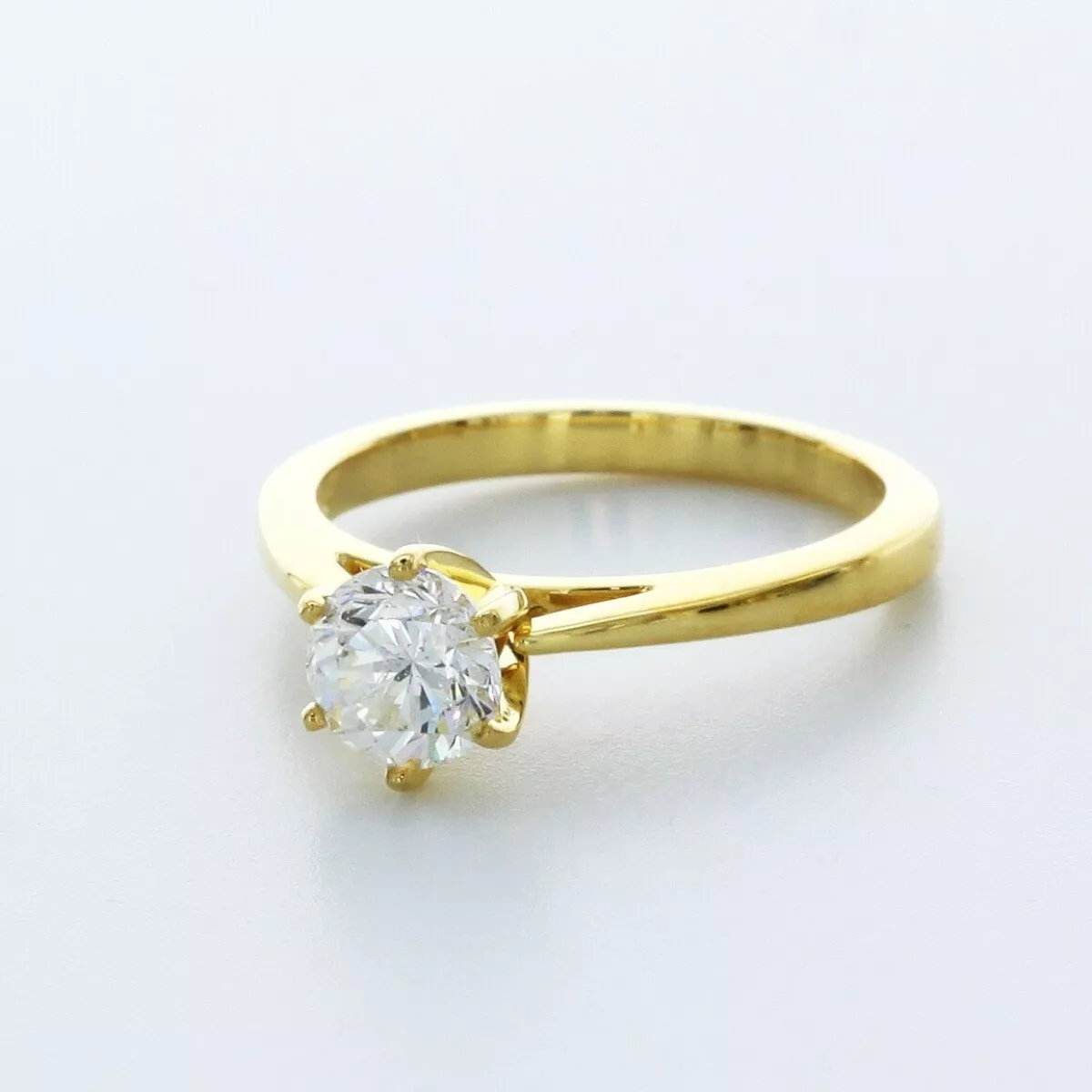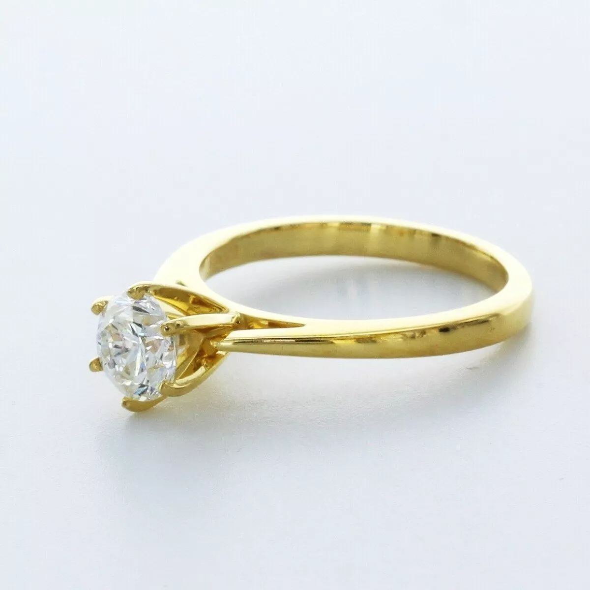 Solid 14K Yellow Gold Solitaire Engagement Ring Classic AGI Cert 1.12 CT Round Lab-Grown Diamond E VS2